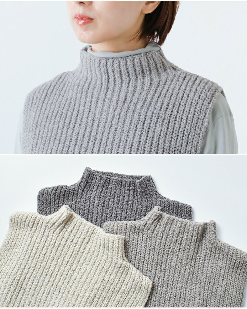 すっきりとしたシルエットでありながら、やわらかく首まわりを包み込み、上品な印象を添えます。少しゆとりのあるシルエットでシャツやカットソーとの重ね着も快適に楽しめます。
