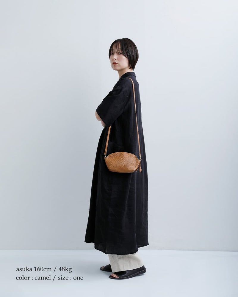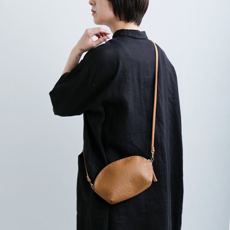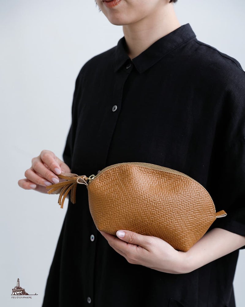 FEU D’UN PHARE(フーダンファール)より、カウレザー型押しショルダーポーチをご紹介します。上質なカウレザーに、さりげない型押しを施したショルダーバッグ。ほのかに浮かぶ模様が、シンプルな中に静かな表情を生み出します。無駄を削ぎ落としたデザインは、中に入れるものを選ばず、日常のあらゆるシーンに自然とフィット。コンパクトながら肩掛けできる軽やかなフォルムは、身軽なおでかけに活躍。日常的に使うものだからこそ、手にするたびに感じる質感と、飽きのこない美しさを。何を入れてもサマになる、頼れるバッグです。