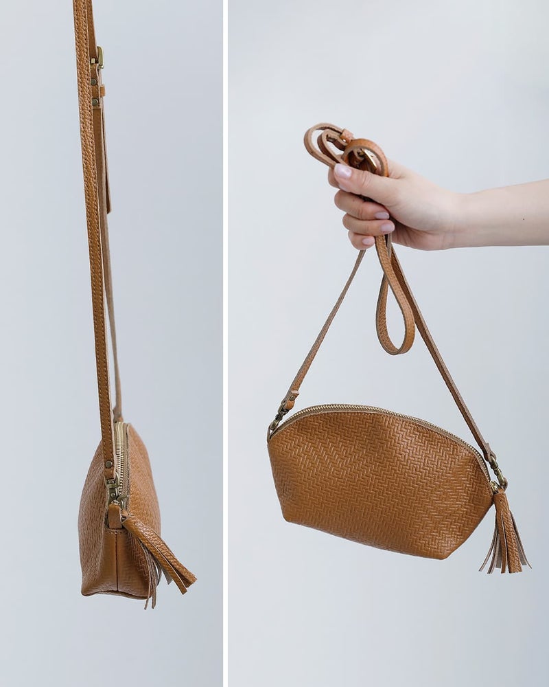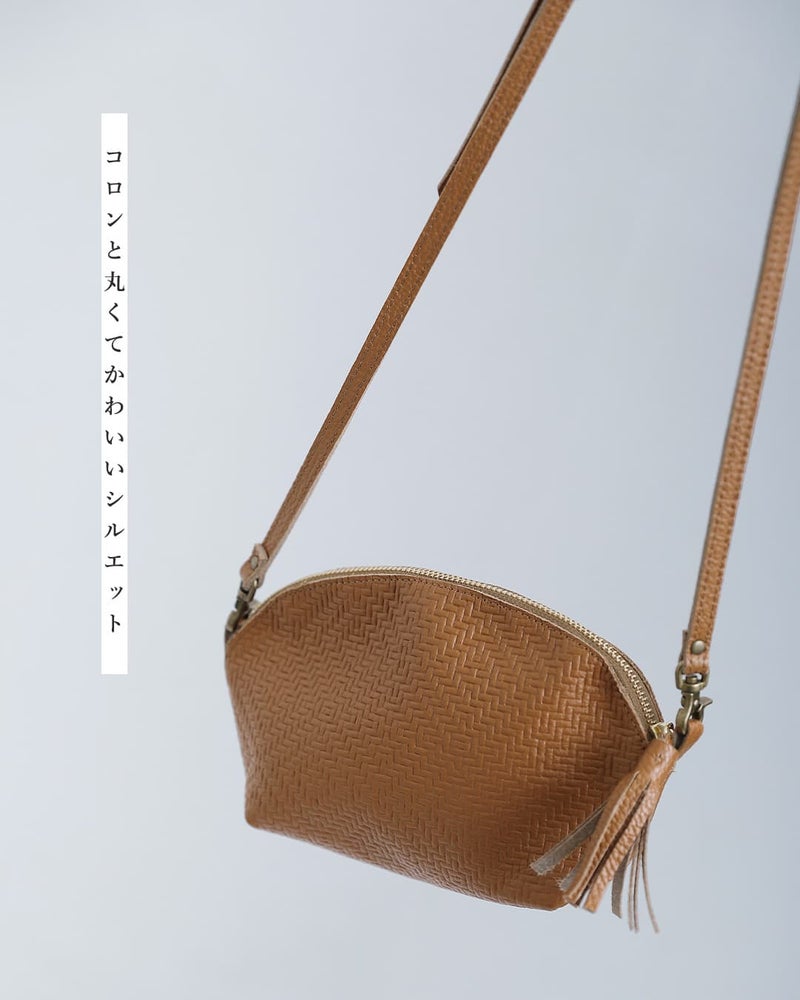 身軽に出かけられるデザインで、丸みのあるフォルムが体にフィット。スマホや財布を入れてもかさばらず、軽やかに街歩きやちょっとしたおでかけを楽しめます。
