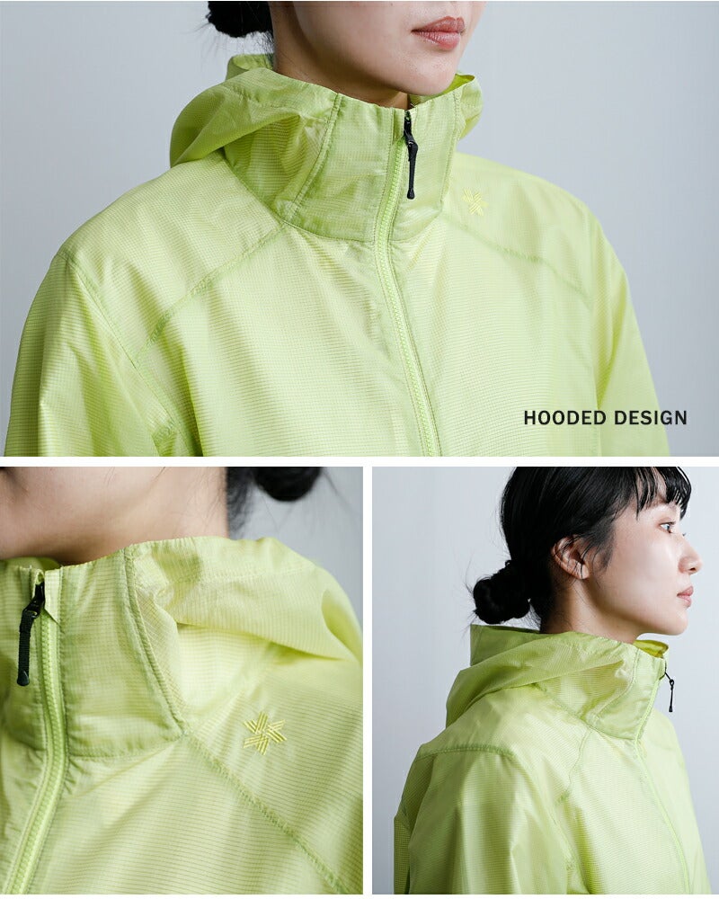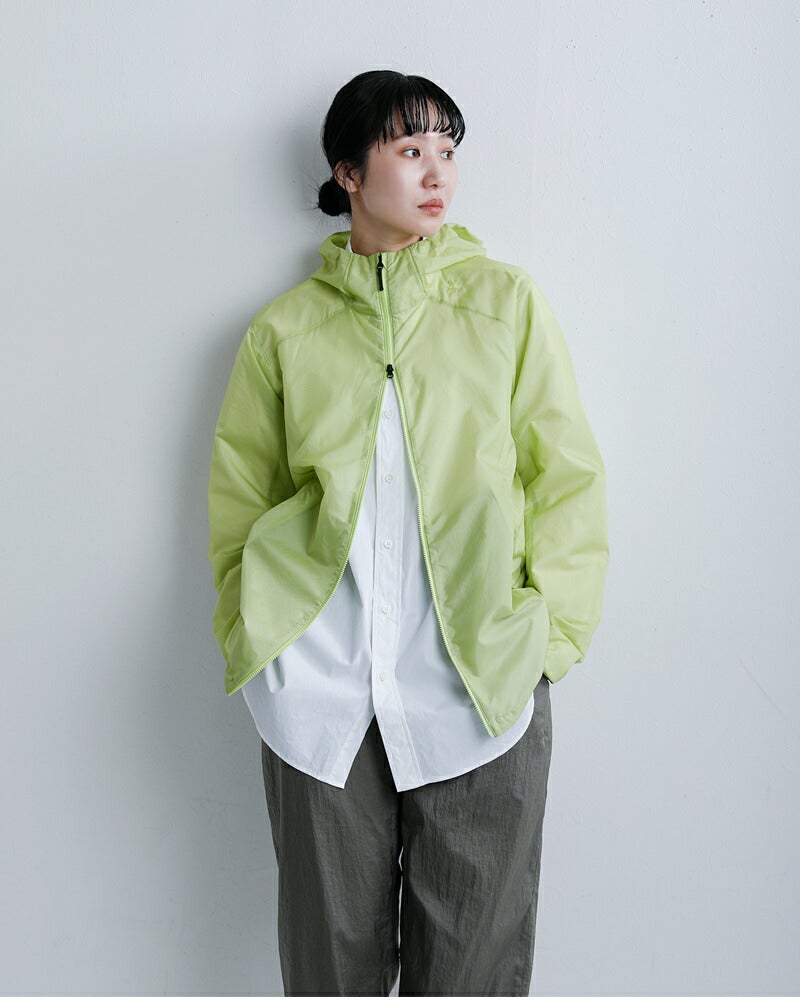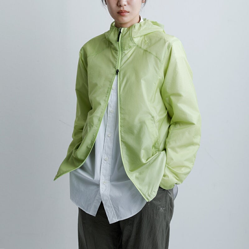 GOLDWIN(ゴールドウイン)より、エアリー シェル パッカブル ウィンド ジャケット Airly Shell Packable Windのご紹介です。通常のトレッキングはもちろん、ファストハイクや肌寒いときのランニングにも活躍します。凹凸感のある軽量のリップストップ生地を採用しています。立体的な前振り袖にすることで前後の動きがしやすい、動作の自由度が高いパターン設計にしています。フードに配したポケットに本体を収納できるパッカブル仕様で、コンパクトに携行できます。