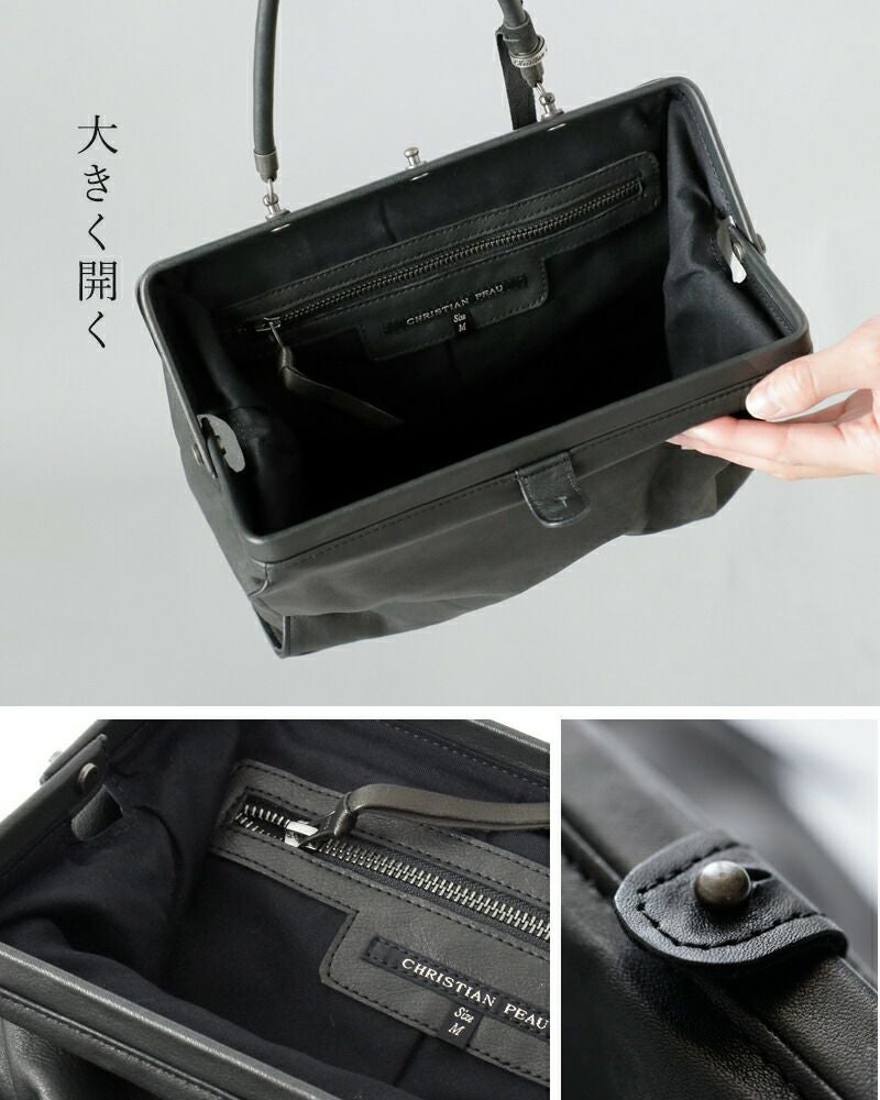 CHRISTIAN PEAU(クリスチャン・ポー・クリスチャンポー)より、レザー ショルダー ポーチ Mをご紹介します。重厚感のあるレザーと、がま口デザインがアンティーク品のような雰囲気のあるバッグ。ストラップ付きで、ショルダーバッグとしても、トートバッグとしてもお使い頂けます。普段の服に合わせるだけで、大人っぽく洗練されたコーデにしてくれる、上質感が溢れる逸品です。