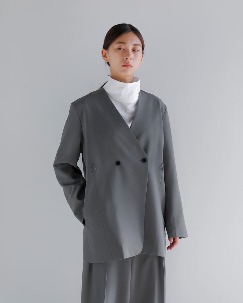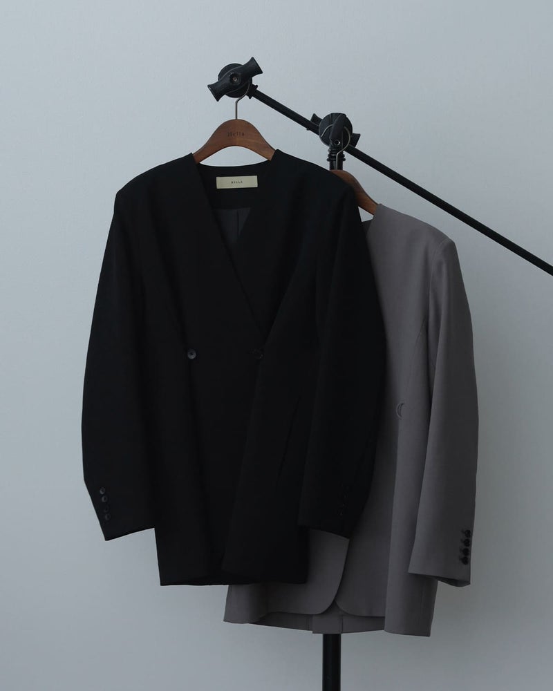 シャープで構築的な印象を持ちながら、着こなしによって硬さを抑えることもできる、ミニマルかつ洗練された雰囲気のジャケット。