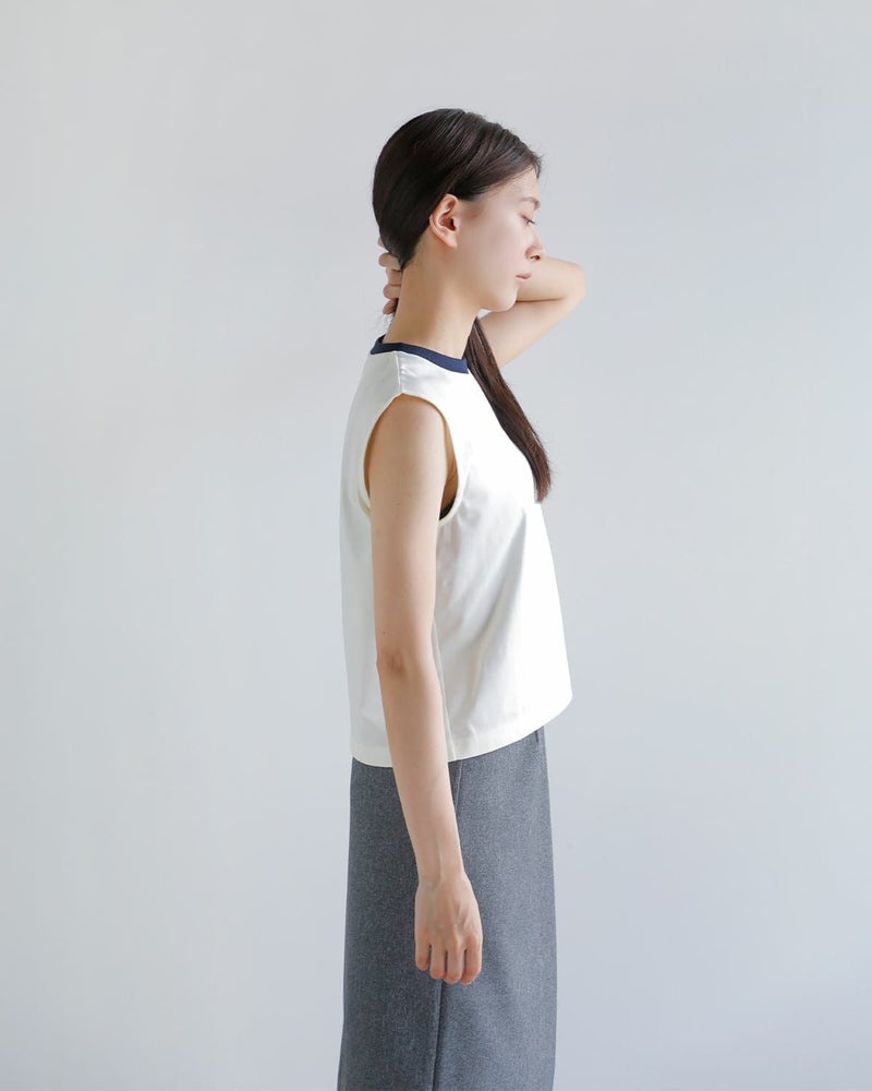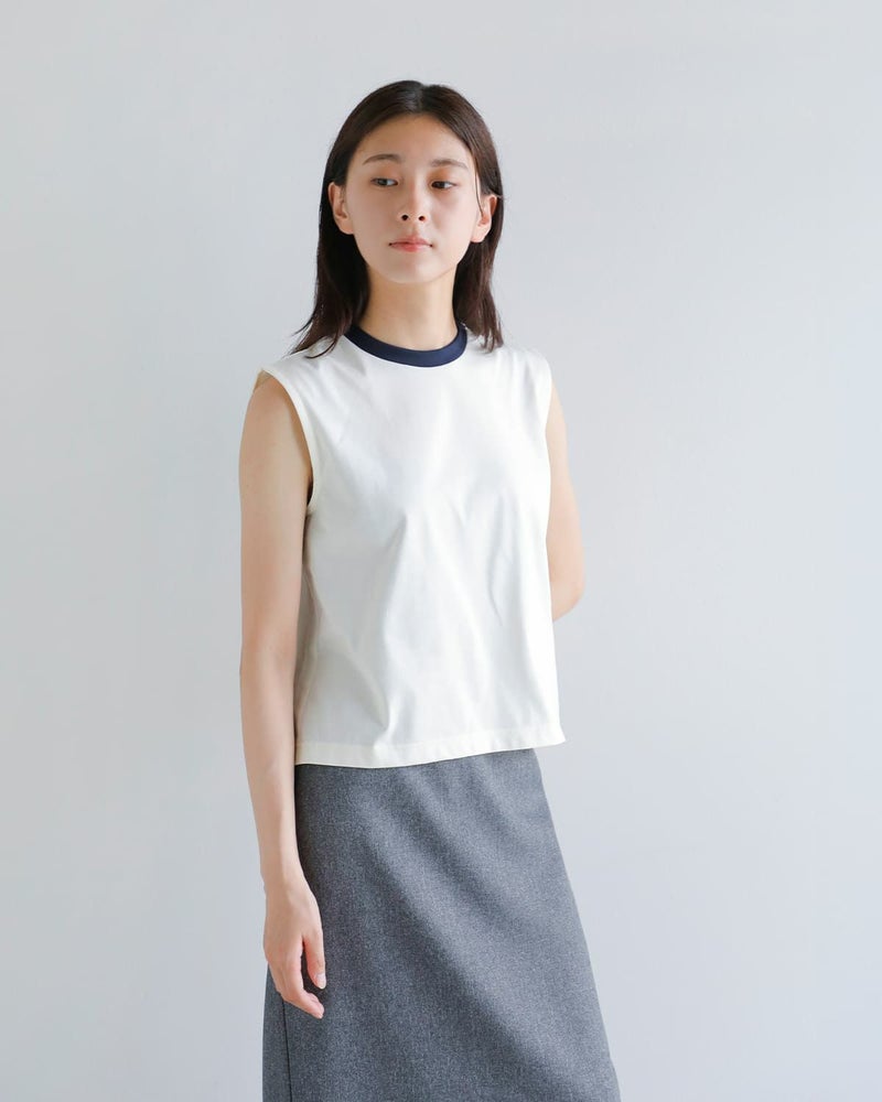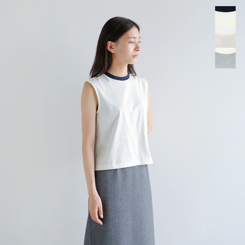 2トーンクルーネックコットン100%ノースリーブTシャツ日本製NicolasJenson Nicolas Jenson ニコラジェンソン コットン 2トーン スリーブレス カットソー “TWO TONE SLEEVELESS” js-24ss-02-kk レディース