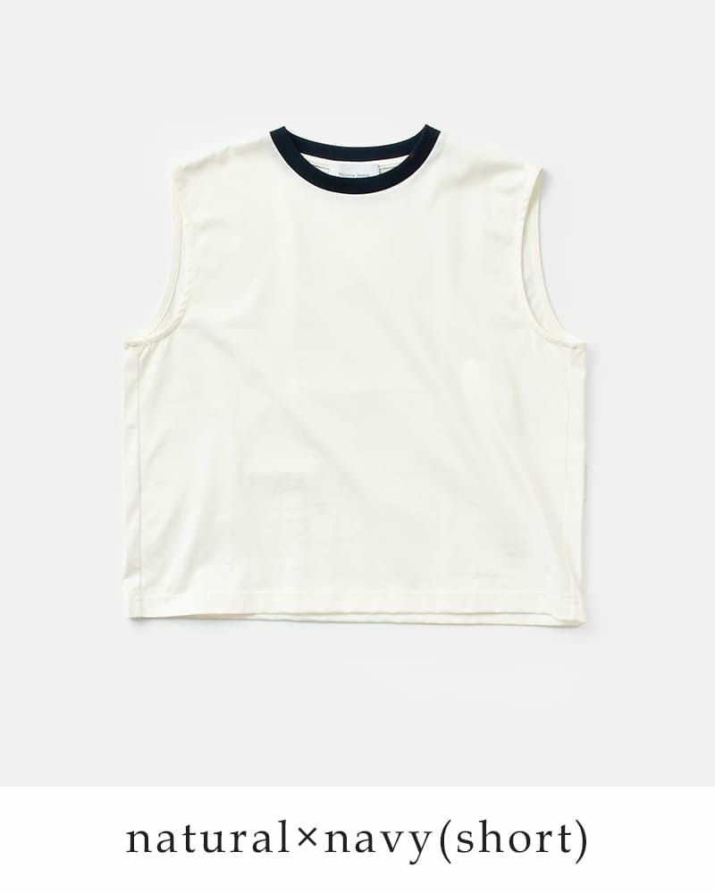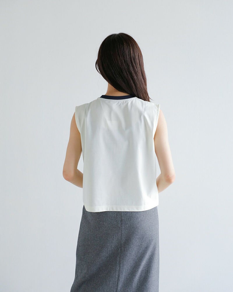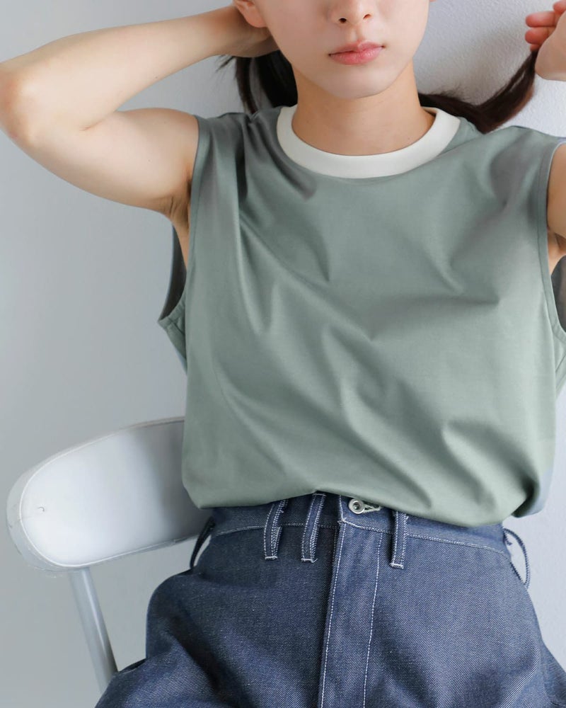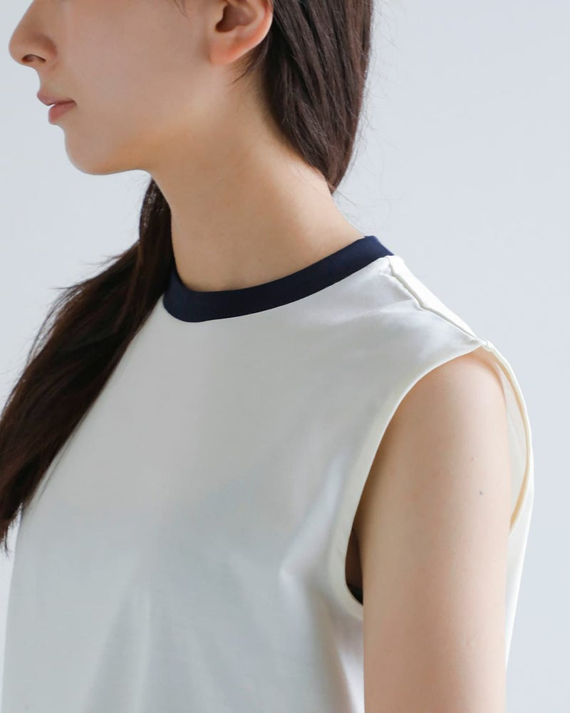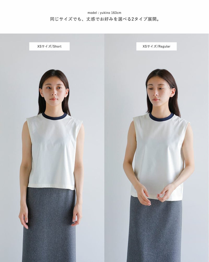 ショート丈・レギュラー丈の2種類から選ぶことのできる2トーンスリーブレスカットソー。