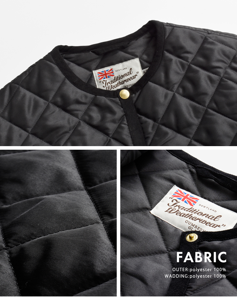 控えめな光沢感が上品なキルティング生地を使用。軽くて暖かく、撥水性も備えた高密度ポリエステルが使用され、機能性も充実しています。中綿入りで保温性も高く、秋から冬にかけて活躍してくれます。