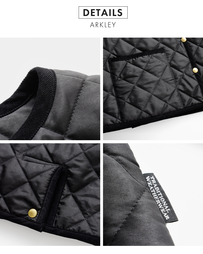 Traditional Weatherwearのベストセラーアイテム、ARKLEY(アークリー)をご紹介します。上品な光沢のキルティングとゴールドボタンが特徴のキルティングショートコート。肩まわりがコンパクトなすっきりとしたデザインで、女性らしいきれいなラインが特徴です。英国らしい気品とモダンなトレンド感のある、大人のためのキルティングジャケットです。34,36サイズの2サイズをご用意しています。