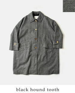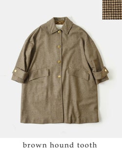 首元はシンプルなステンカラーでマニッシュな首元に。シャツ襟を覗かせたり、スカーフやマフラーとの相性も抜群です。HUMBIEの特徴でもある、襟釣りチェーン付き。