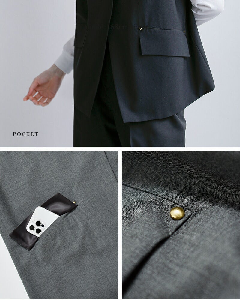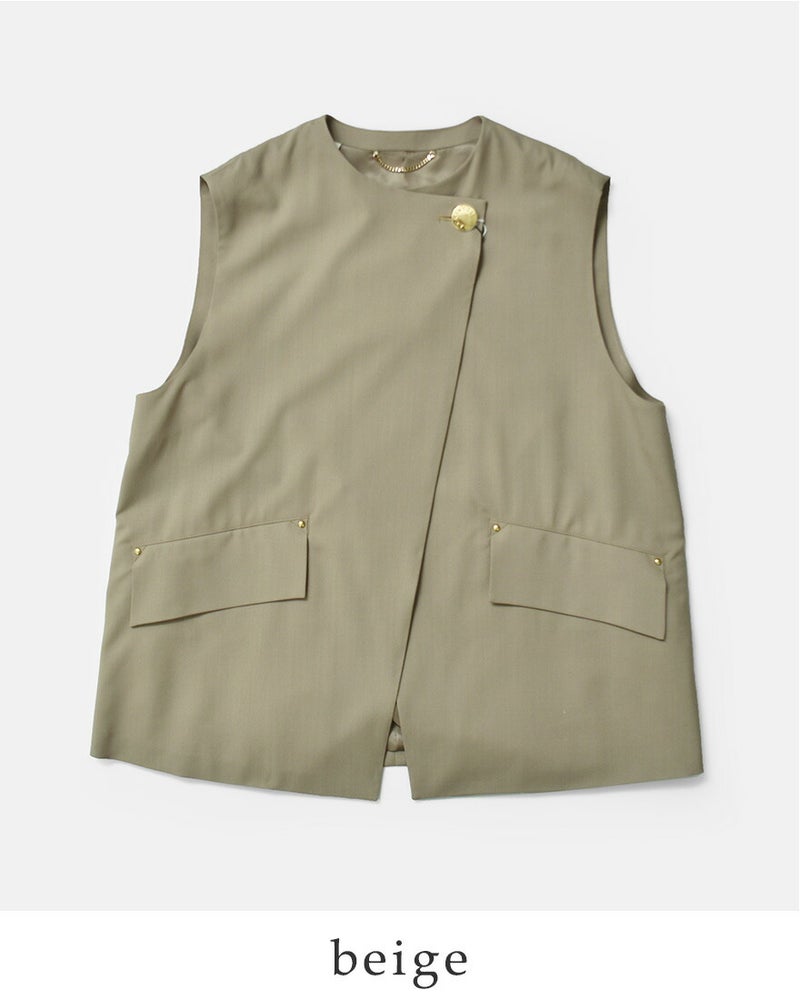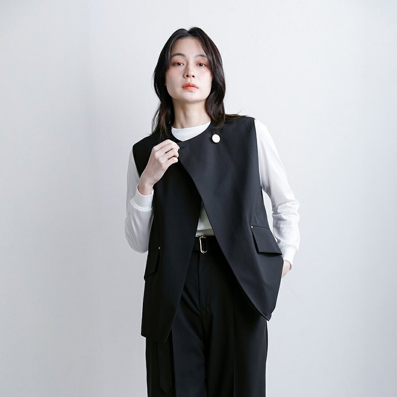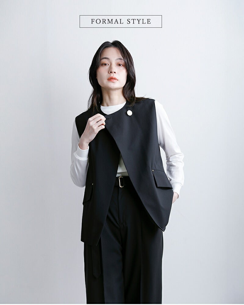 フォーマルな雰囲気にぴったりのジレ。合わせるトップス次第で雰囲気が変わり、着回し力も高いアイテムです。