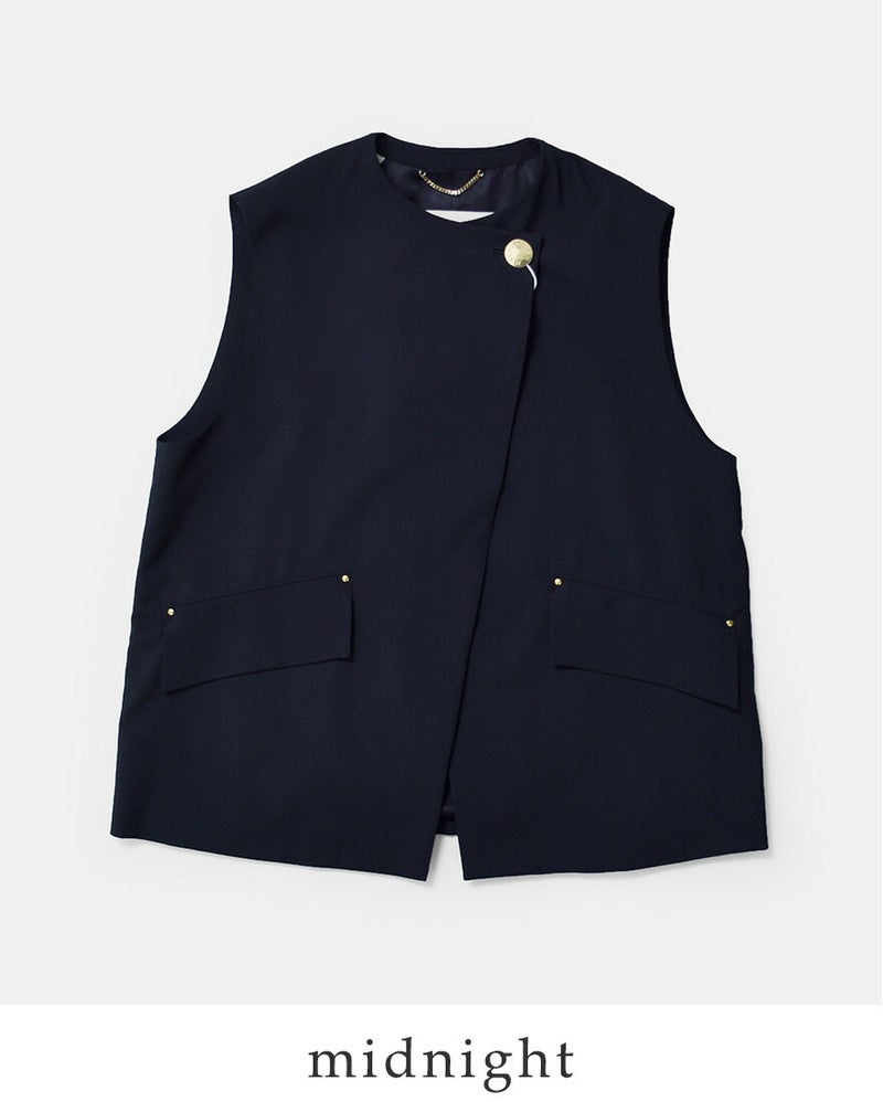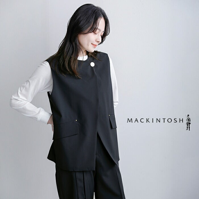 フロントラインが美しいトロピカルウールのゆったりレイヤードしやすいフォーマルにも活躍するジレベスト MACKINTOSH マッキントッシュ 撥水トロピカルウール ノーカラージレ “CLIMPY MB” l261hi1202fldy レディース 2026ss新作 春夏