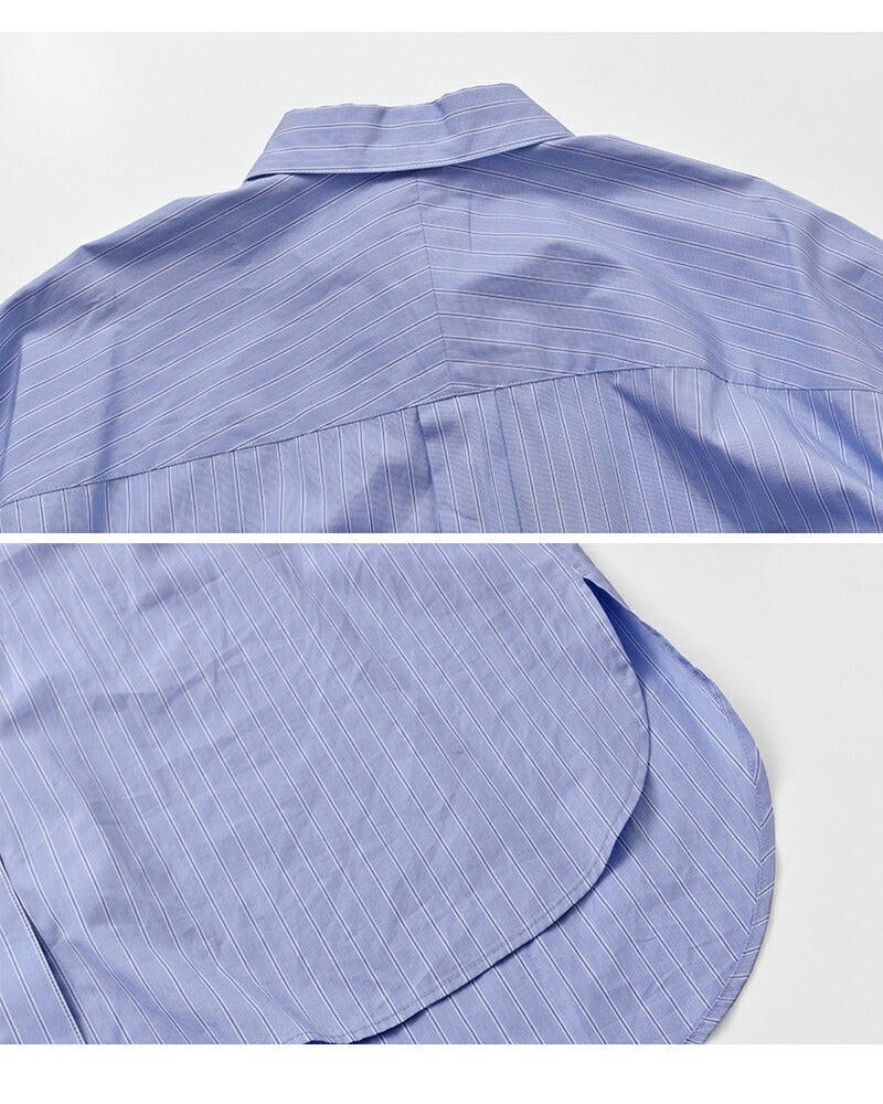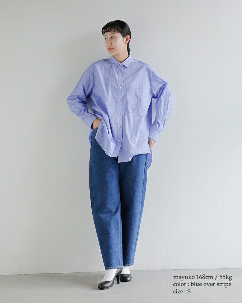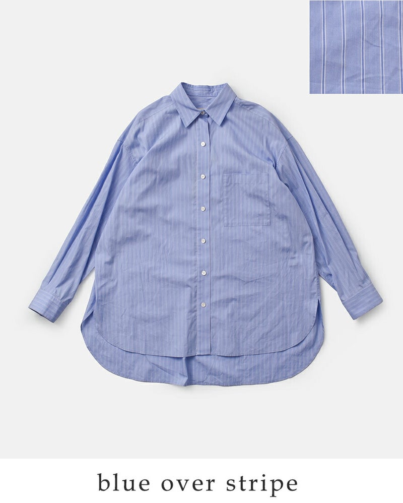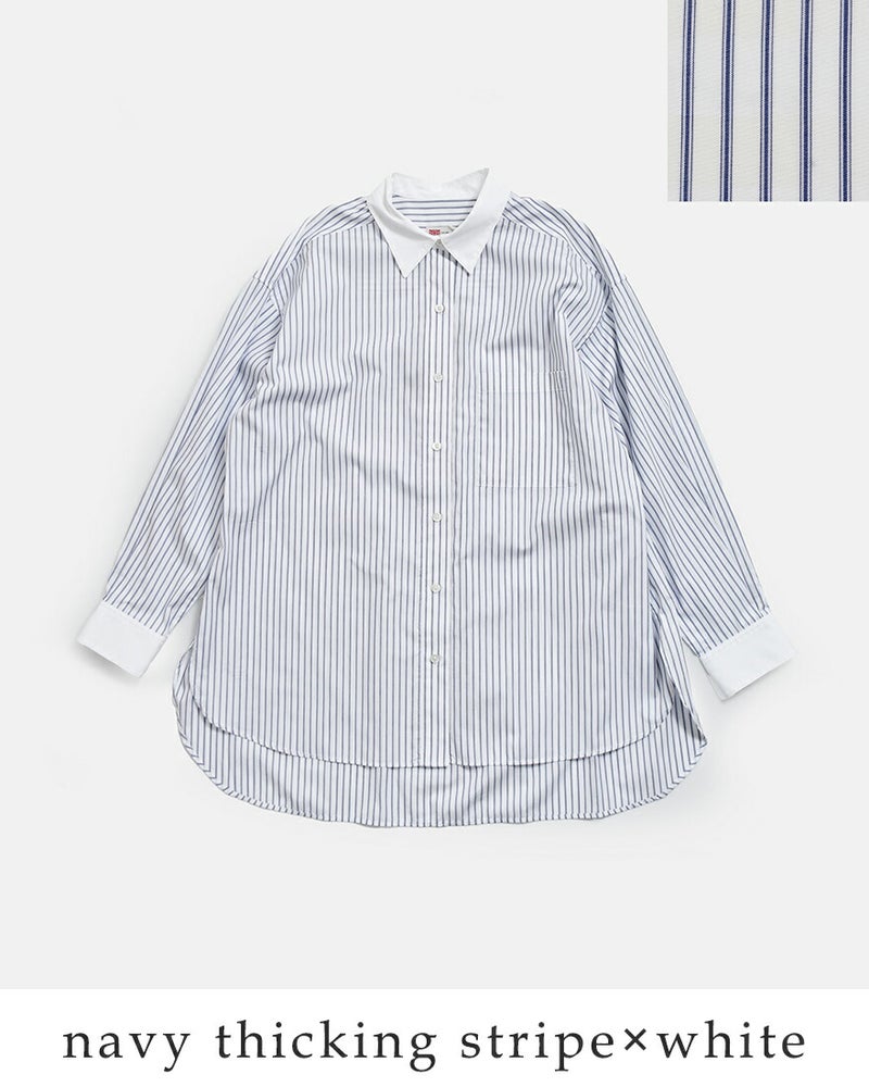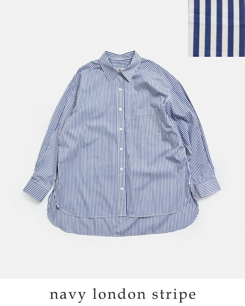 きっちり感のある襟とカフスがメリハリをプラス。 ※navy thicking stripe×whiteのみ、カフスと襟が白となります。 navy london stripe/blue over stripeのカラーは、カフスと襟が身頃と共地になります。