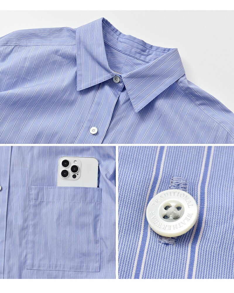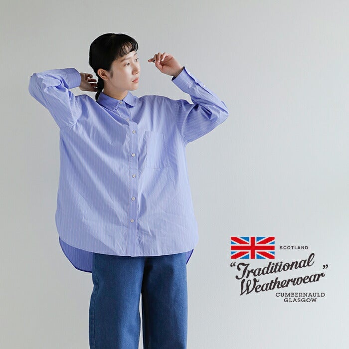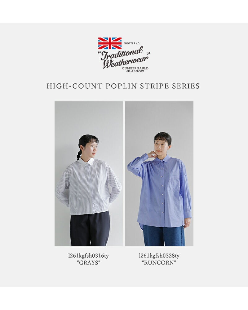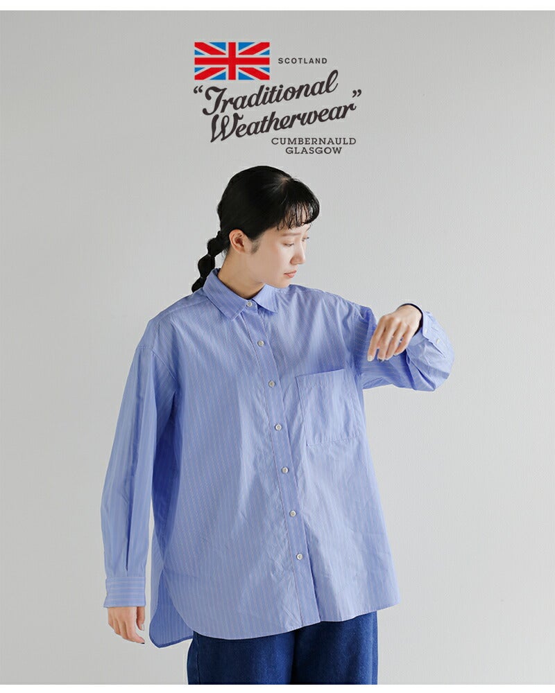 Traditional Weatherwear(トラディショナルウェザーウェア)より、ハイカウントポプリン ストライプ ランコーン ロングスリーブ シャツ “RUNCORN”のご紹介です。高密度に織り上げた上質なコットン素材を使用したシャツ。ストライプデザインがシンプルながら洗練された印象を演出します。ふんわりと広がるシルエットで動きやすく、着丈は後ろがほどよく長めで、どんなボトムにも合わせやすい一枚です。軽やかな着心地で、オンオフ問わず活躍します。