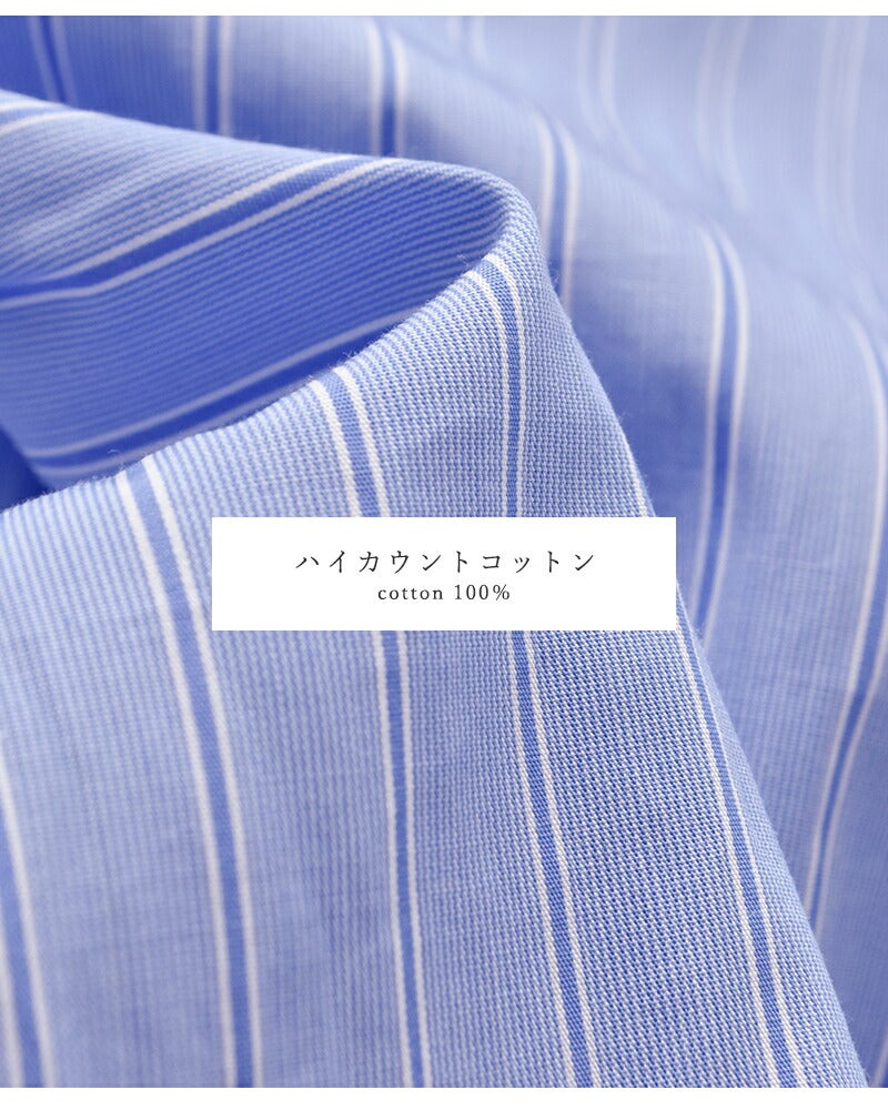 ・コットン 100% 高密度に織り上げたハイカウントポプリンの、上質なコットン素材を使用しています。さらりとした優しい肌触りで快適な着心地。適度なハリがあり、シルエットを美しく保ってくれます。