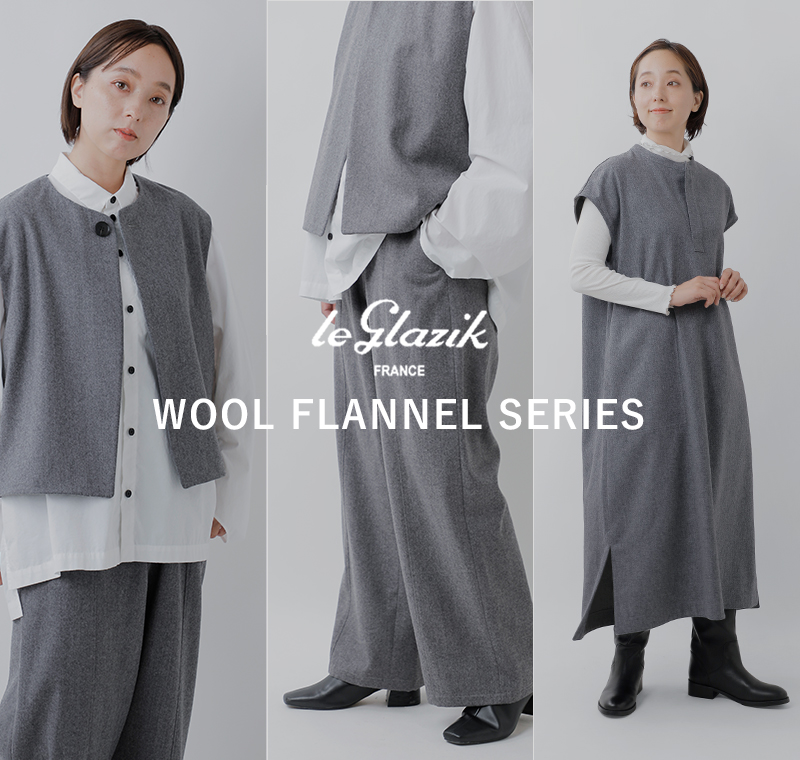 Le Glazik(ルグラジック)より、ウール フランネル クルーネック ジレのご紹介です。