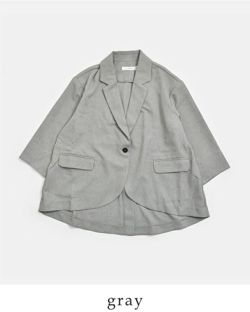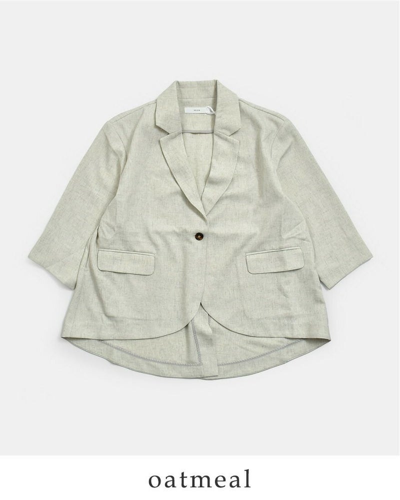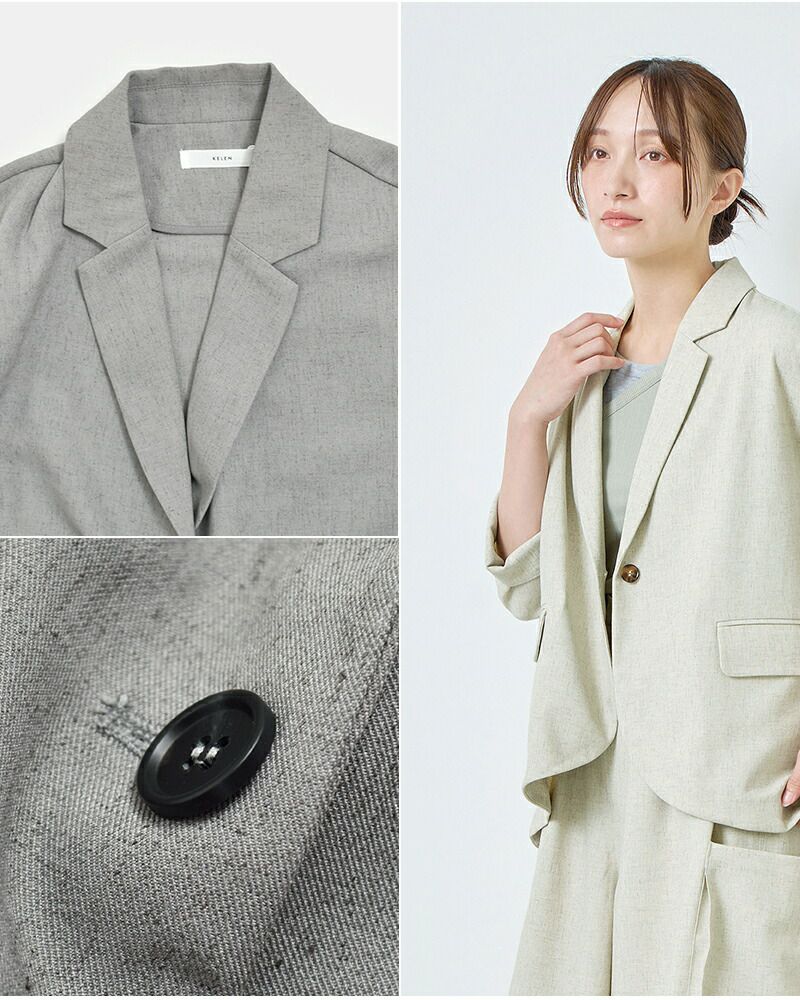 kelen(ケレン)より、リネン混ストレッチ テーラード バックフレア ジャケット “HELIN” のご紹介です。薄すぎない程よい厚みで落ち感があり、シワになりにくいリネン混の素材を使用。前後丈感の違うデザインで、前身は細めのテーラード襟でスッキリとした印象。後身はウエストから下にフレアを入れ動きをプラス。7分袖できめすぎない洗練されたスタイルが完成します。共通素材のタックパンツ(LKL26HPT2129)と合わて、オフィスシーンやオケージョンでも着用いただけます。