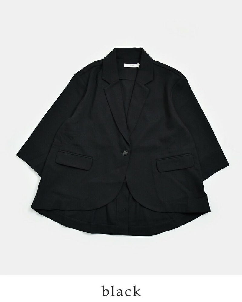 フロントはベーシックなテーラードデザイン。ワンボタンでさっと羽織りやすいデザイン。