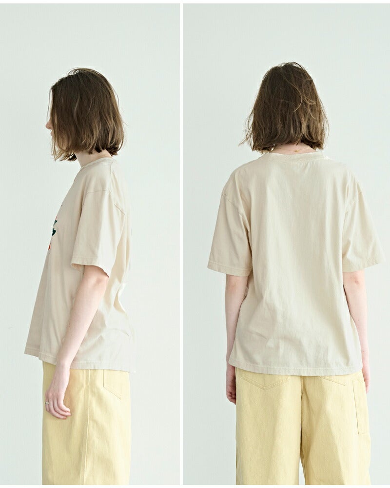 ■cotton 100% 柔らかく心地よい肌触りの、5.6ozコットン天竺素材を使用。プリント後に製品洗いを施すことで馴染んだ風合いに仕上げました。