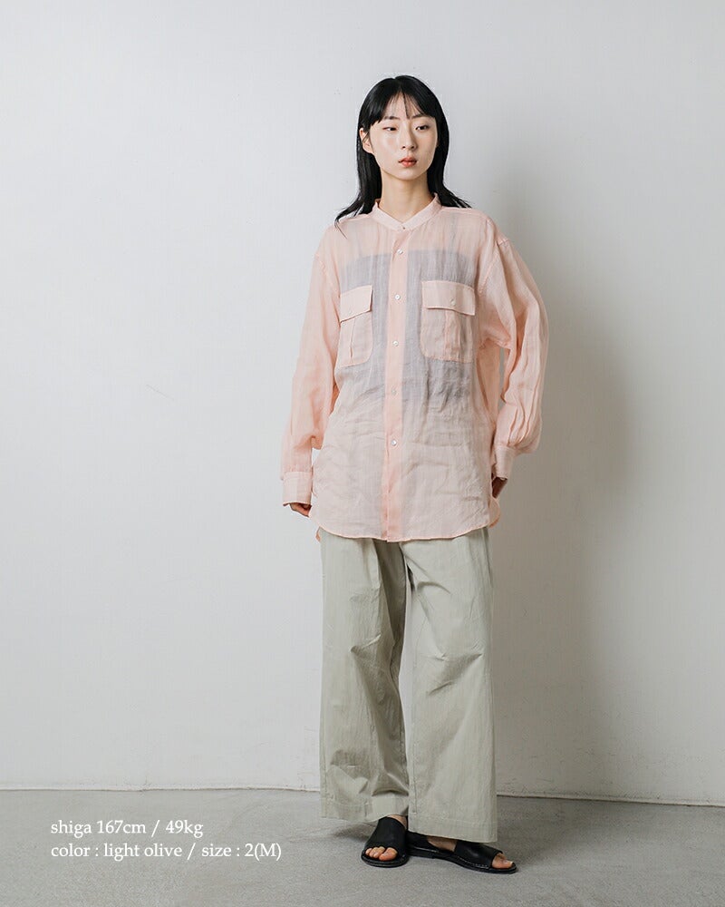 コットン 71% / ポリエステル 29% 素材には、ワッシャー加工を施した綿×ポリエステルのライトウェザー生地を使用。ナチュラルなシワ感と軽やかな着心地が魅力で、ロングシーズン快適に着用できます。