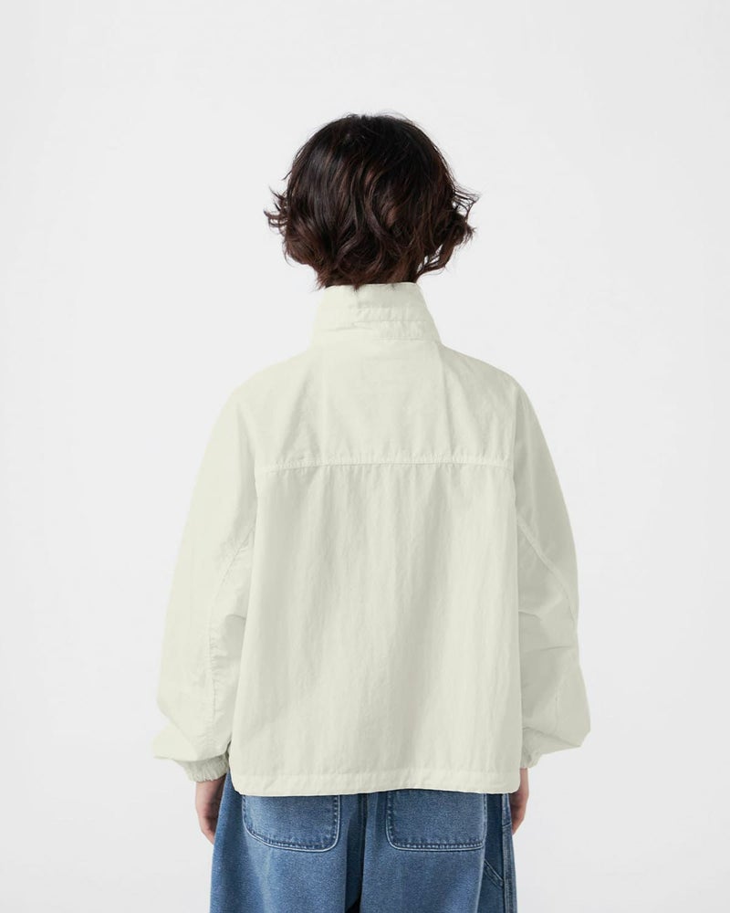 高密度のコットンナイロンウェザークロスが上品な生地感。ゆったりと着られるオーバーサイズフィットに、クロップド丈ですっきりと着ていただけます。