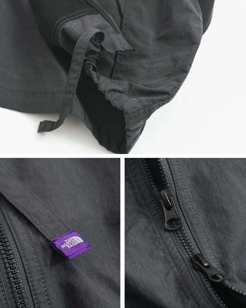袖口はゴム仕様で、手首にフィット。バック右裾に刺繍ロゴ入り。コード先にTHE NORTH FACE Purple Labelネームラベル付き。