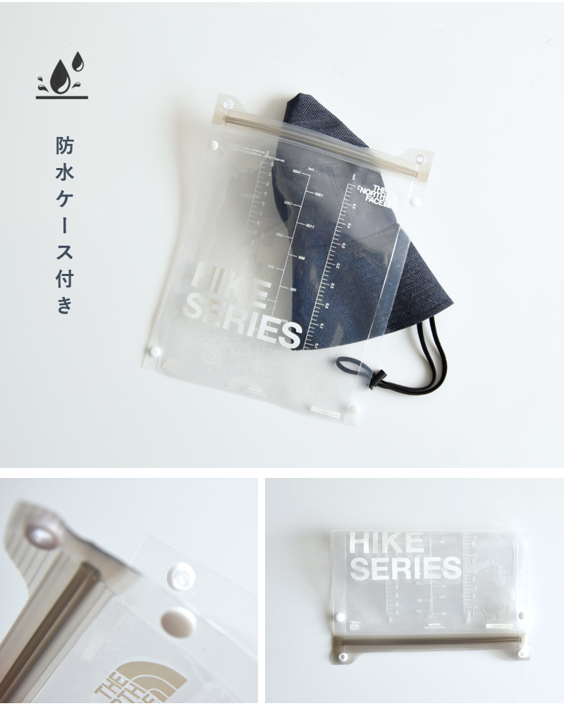 ノースフェイスのネームが入ったオリジナルケースを付属。山登り、スキー、海などのアウトドアや、お風呂など濡れては困る物の持ち運びにも幅広くお使いいただけます。タッチパネルとしても利用可能です。