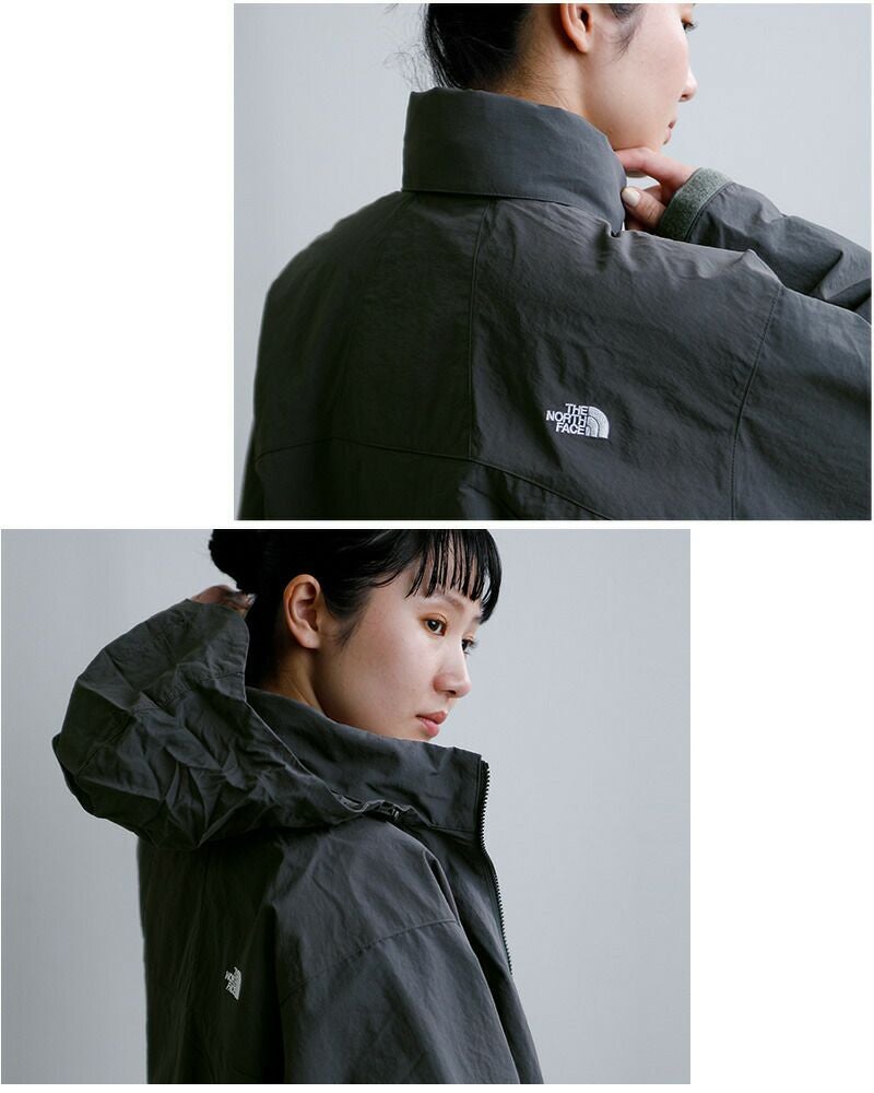 フードは襟部分にすっきりと折り込める仕様。 使用しないときはコンパクトに収納でき、スタンドカラーのようなクリーンな印象に。 シーンに合わせて表情を変えられる、実用性とデザイン性を兼ね備えたディテールです。