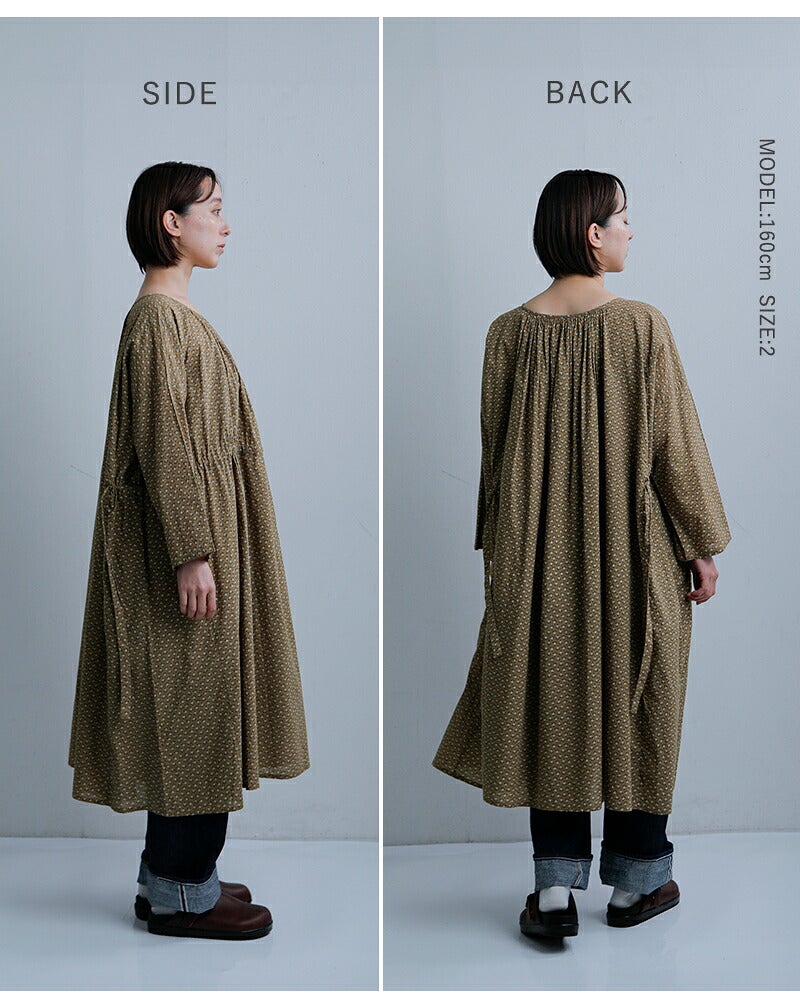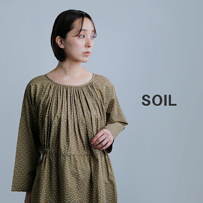 SOIL(ソイル)より、コットンボイル スモールフラワープリント 2way ギャザー スモックドレスのご紹介です。