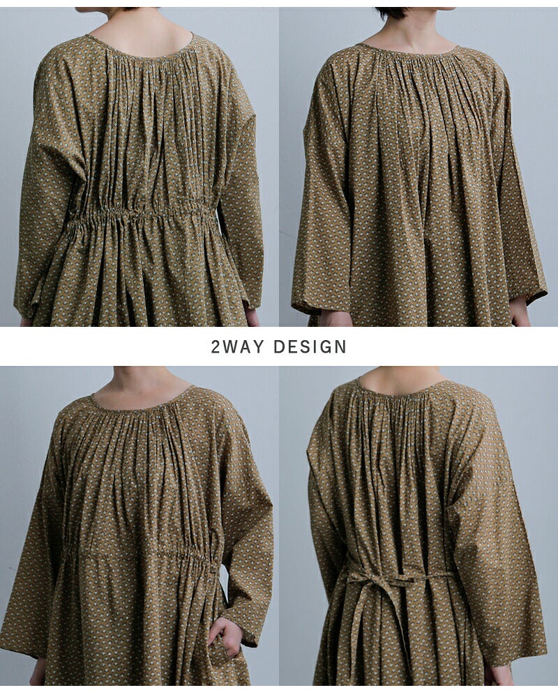 コットンボイルスモールフラワープリント2wayギャザースモックドレスnsl26033