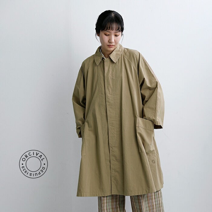 ORCIVAL(オーチバル・オーシバル)より、コットン Aライン ラグランコートのご紹介です。たっぷりと贅沢に生地を使用した、Aラインラグランコート。ポプリン生地を使用することで、軽量アウターに仕上げています。パッチポケットでカジュアルな印象を残しつつ、動くたびに揺れるAラインがドラマチックな一枚です。
