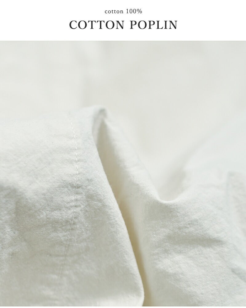一部強撚糸を使用した40番手のポプリン素材に近江晒加工を施した素材を製品染をしています。製品染めならではの製品のパッカリング感が特徴です。
