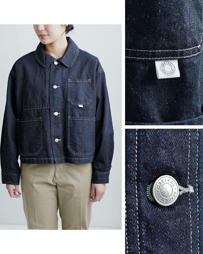 ORCIVAL(オーチバル)より、コットンヘンプデニム カバーオール ジャケットをご紹介します。ショート丈で衿が大きめのフレンチカバーオール。綿と麻(ヘンプ)を混ぜたデニム素材で麻特有のシワ感とドライな質感が特徴です。ゆったりとした大きめのサイジングが特徴で、コットンヘンプの表情豊かな素材感をお楽しみいただけます。軽さのあるデニム生地で、毎日のデイリーコーデにぴったりです。