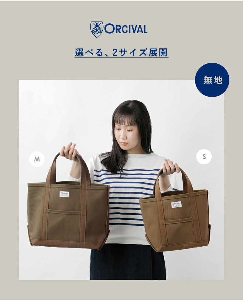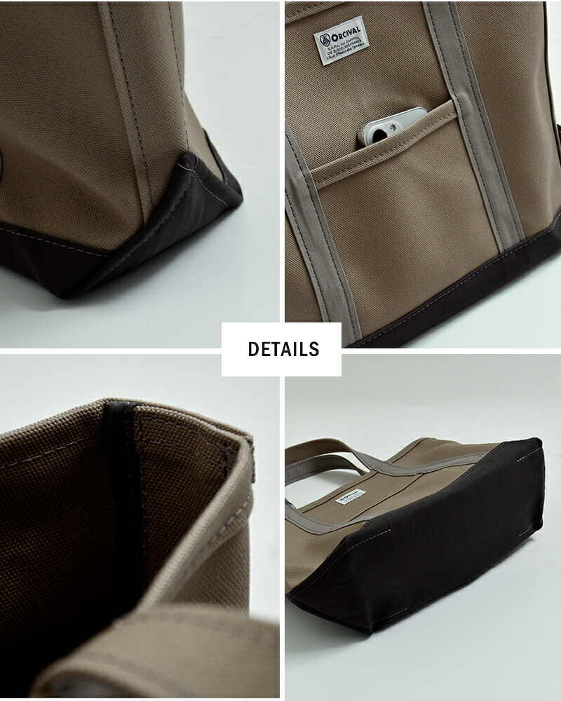 高密度4号帆布のキャンバス地を使用し、しっかりとしたハリ感があるので、型崩れすることなく、腕に掛けても手に持ってもキレイなシルエットを保ちます。フロントにはORCIVALお馴染みのネームタグがあしらわれています。