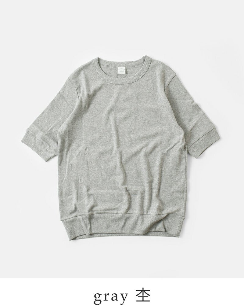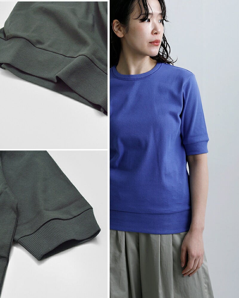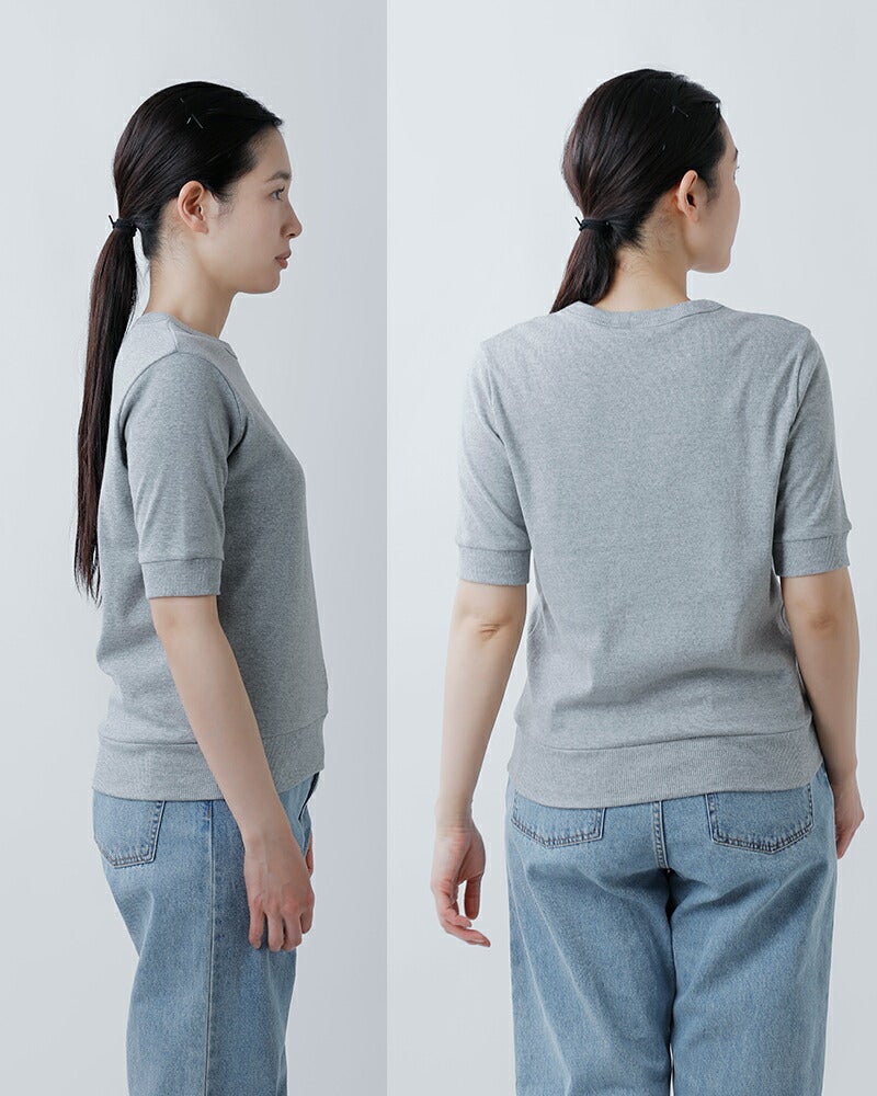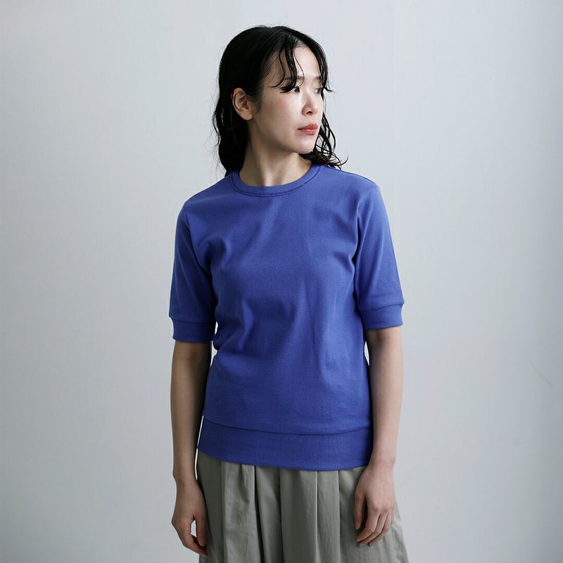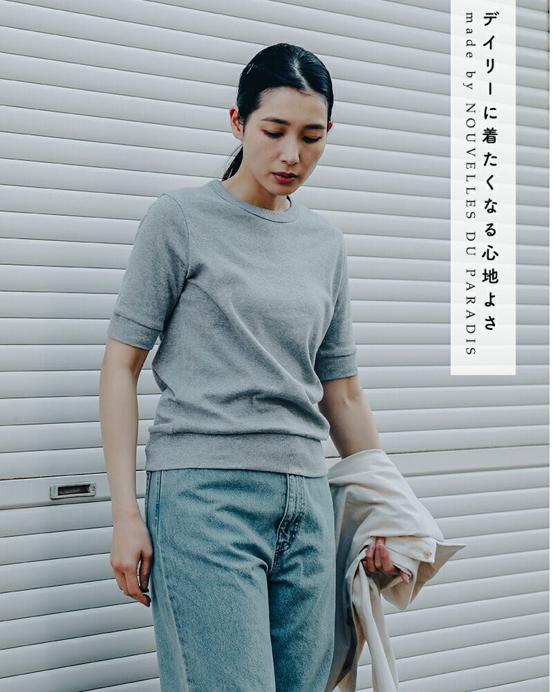 NOUVELLES DU PARADIS(ヌーベルドゥパラディ)より、トロワフライス5分袖クルーネックプルオーバーのご紹介です。気負いなく着られる薄手の五分袖カットソー。プレーンなデザインで合わせるアイテムを選ばず、幅広いコーディネートに使える万能な一枚です。5分丈の袖は二の腕をカバーし、リブがあることですっきり見せてくれます。重ね着する時も袖がもたつかないのも嬉しいポイントです。サイズ感にもこだわり、インナーとしても一枚でも気負いなく来て頂ける薄手のトレーナーのような雰囲気。