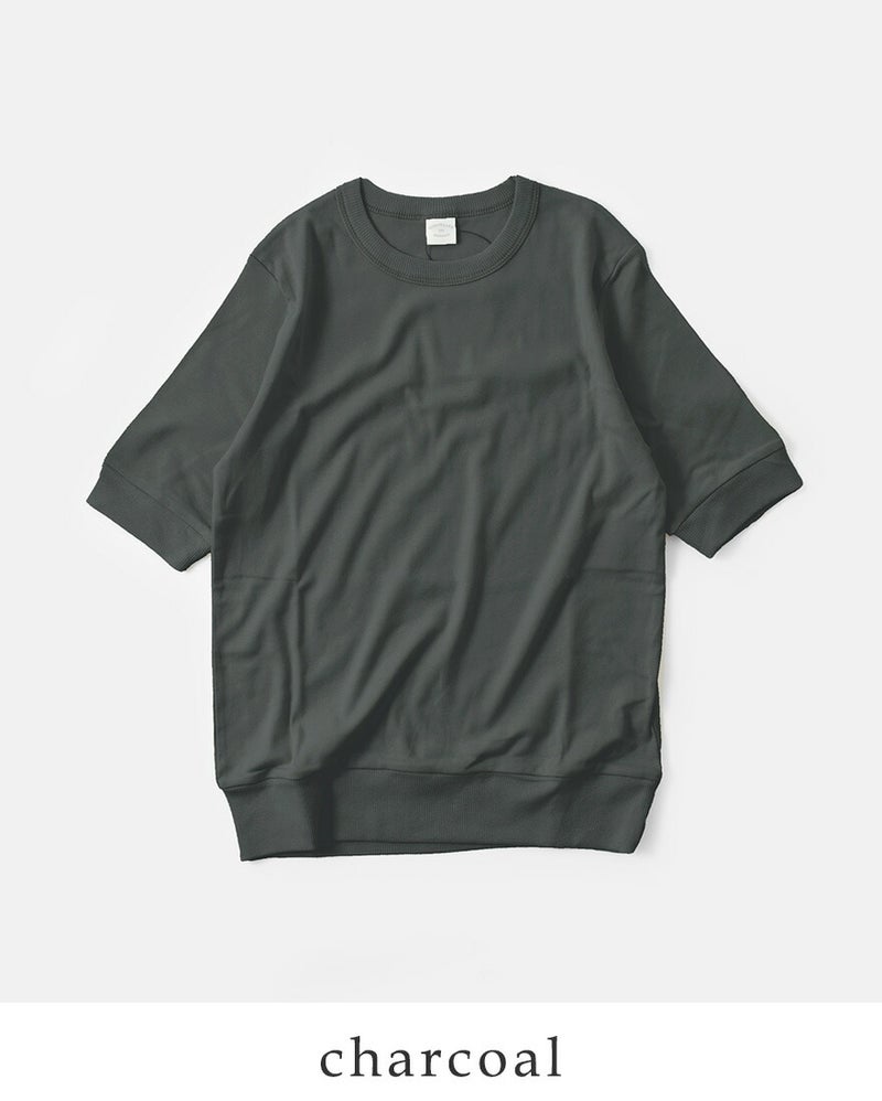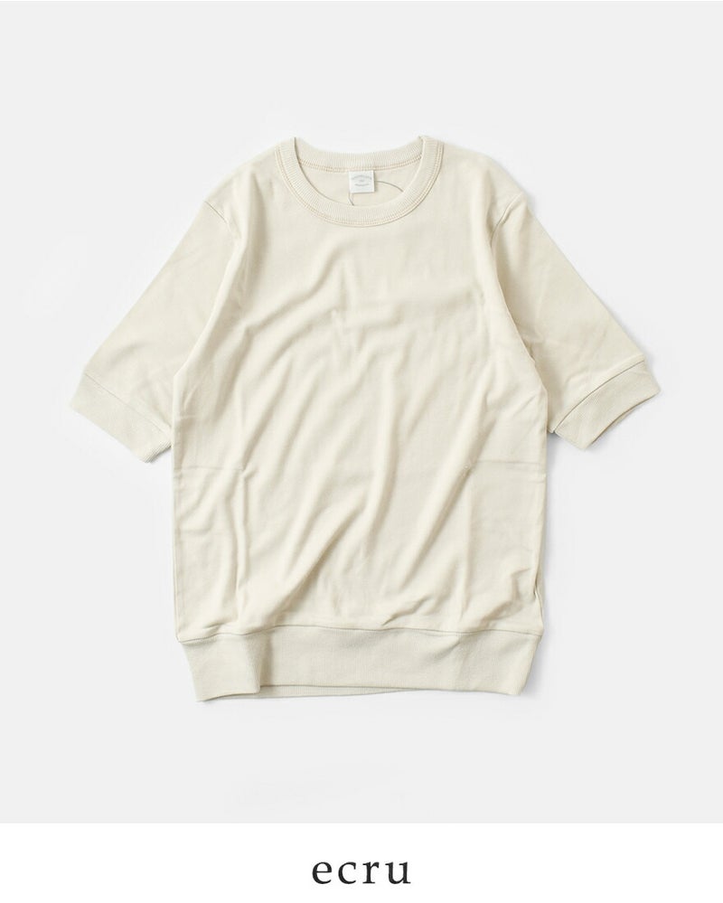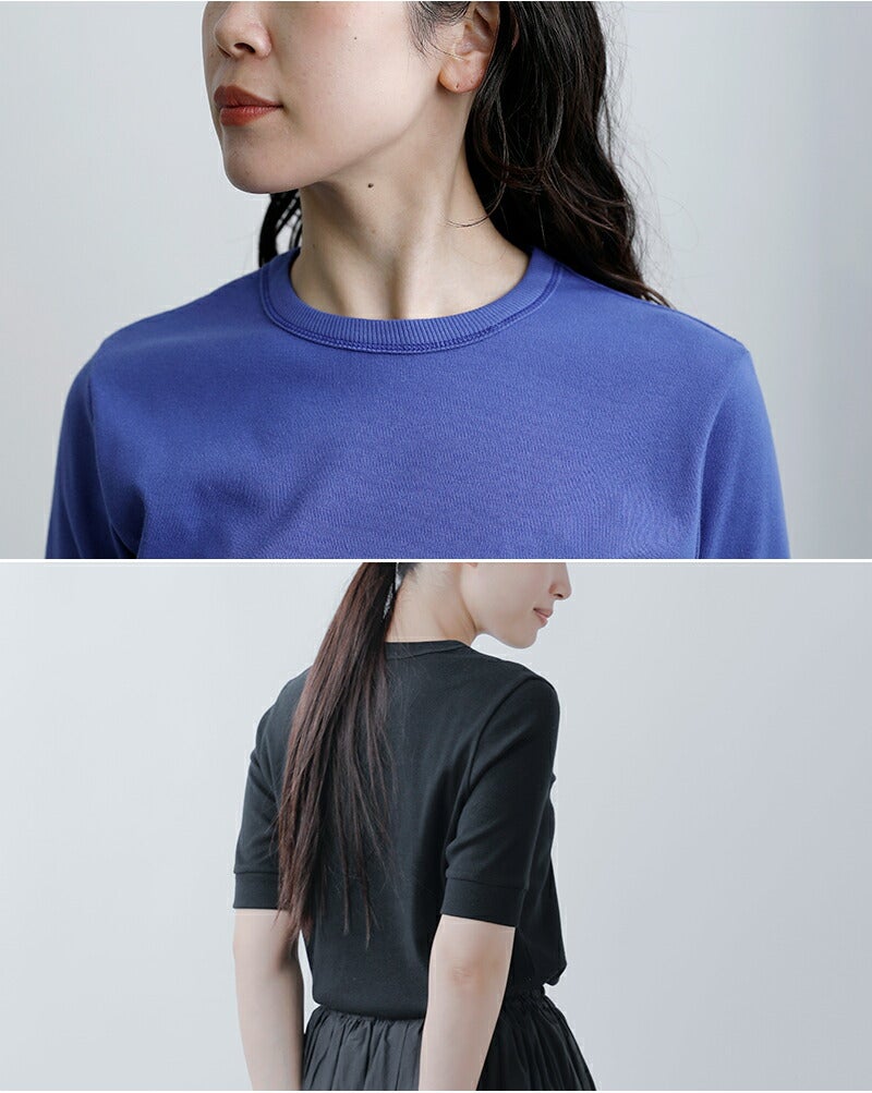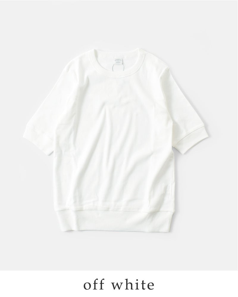 NOUVELLES DU PARADIS(ヌーベルドゥパラディ)より、トロワフライス5分袖クルーネックプルオーバーのご紹介です。気負いなく着られる薄手の五分袖カットソー。プレーンなデザインで合わせるアイテムを選ばず、幅広いコーディネートに使える万能な一枚です。5分丈の袖は二の腕をカバーし、リブがあることですっきり見せてくれます。重ね着する時も袖がもたつかないのも嬉しいポイントです。サイズ感にもこだわり、インナーとしても一枚でも気負いなく来て頂ける薄手のトレーナーのような雰囲気。