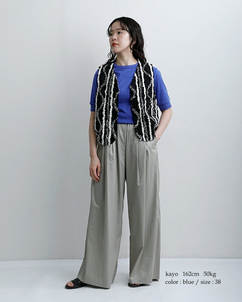 春夏シーズンにちょうど良い厚さと、滑らかな肌触りが気持ちの良いNouvelles du paradis定番のトロワフライス素材を採用。一枚で着ても透けけにくく、ちょうど良い肉感とタッチのトロワフライス。上質な素材で仕立てているので、長く愛用できる一枚です。