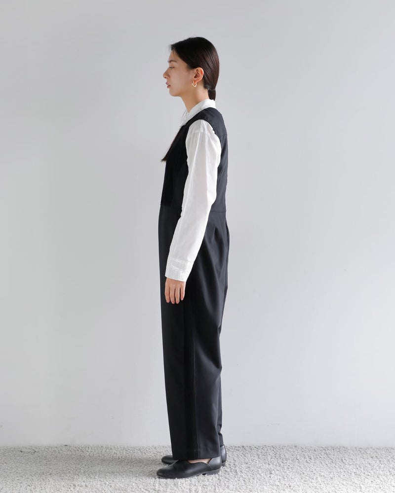 手仕事のピンタックが映えるモダンなオールインワン