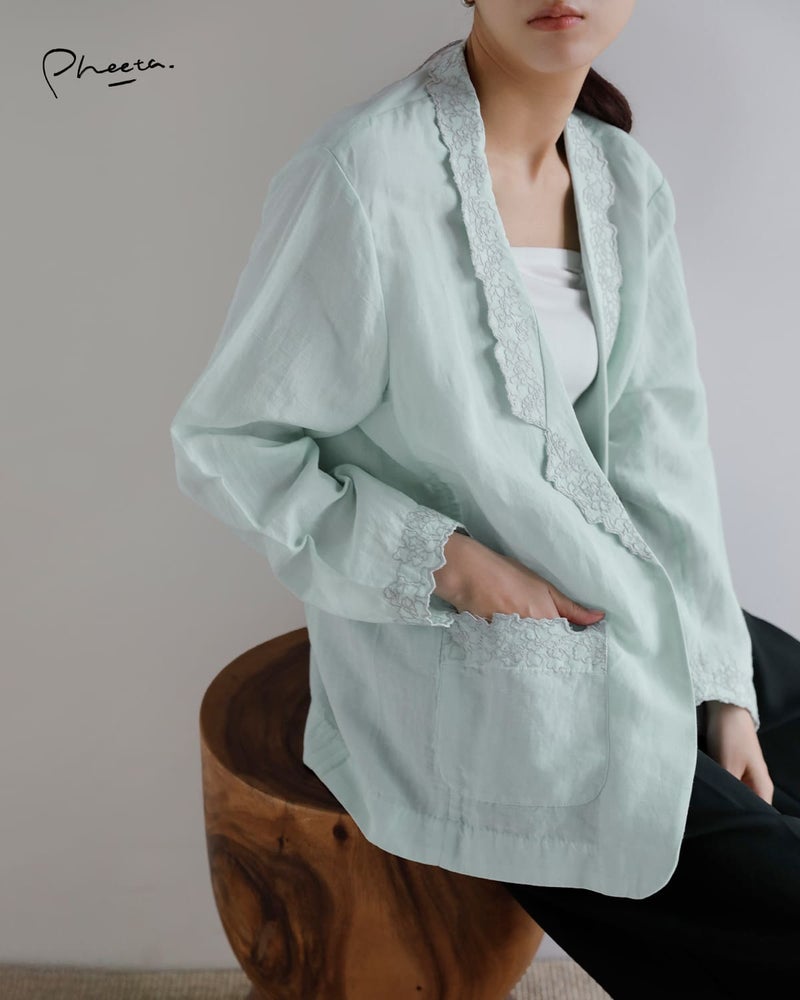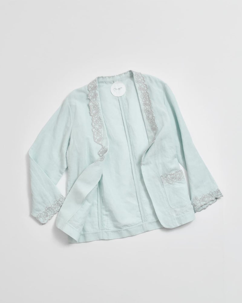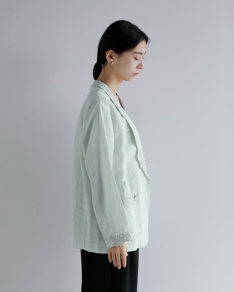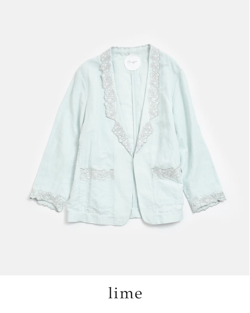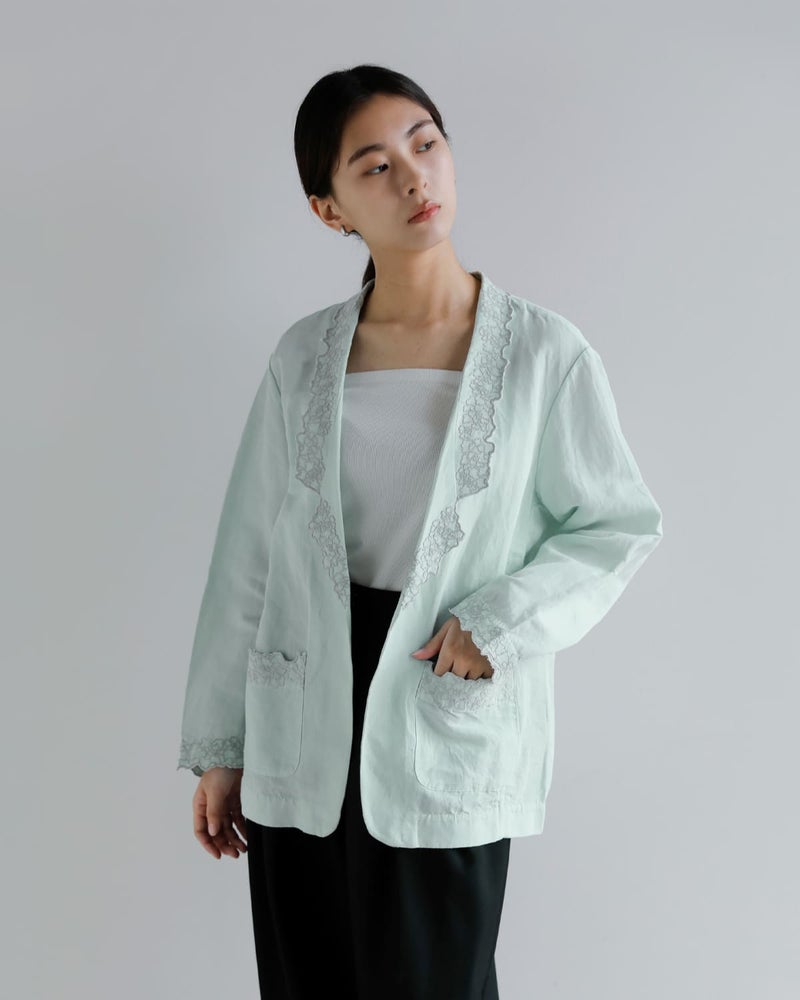 刺繍のディテールが印象的なコットンリネンジャケット。