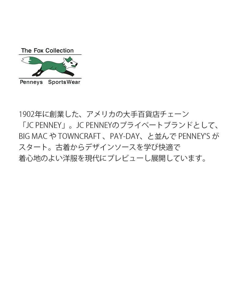 1902年に創業した、アメリカの大手百貨店チェーン 「JC PENNEY」。JC PENNEYのプライベートブランドとして、 BIG MAC や TOWNCRAFT 、PAY-DAY、と並んで PENNEYS が スタート。古着からデザインソースを学び快適で 着心地のよい洋服を現代にプレビューし展開しています。