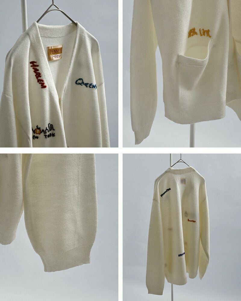 PENNEYS(ペニーズ)より、ハンド刺繍 ニット カーディガンのご紹介です。80年代に生産されたアーカイブモデルをベースに、現代的なバランスでアップデートした一着。落書きのような遊び心あふれるデザインが、コーディネートにストリート感とアーティスティックなムードをプラスします。多色使いのハンド刺繍は、シンプルになりがちなカーディガンスタイルのアクセントに。さりげなくも存在感のある仕上がりです。