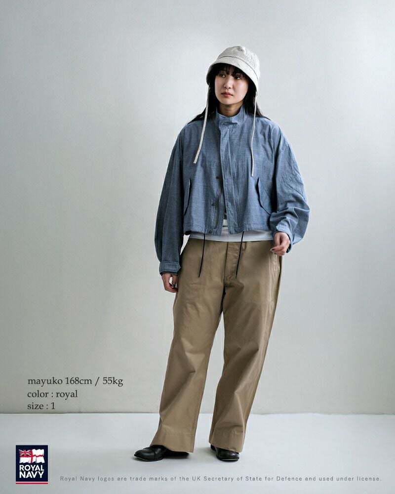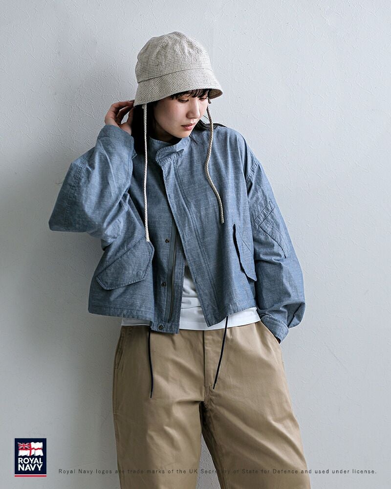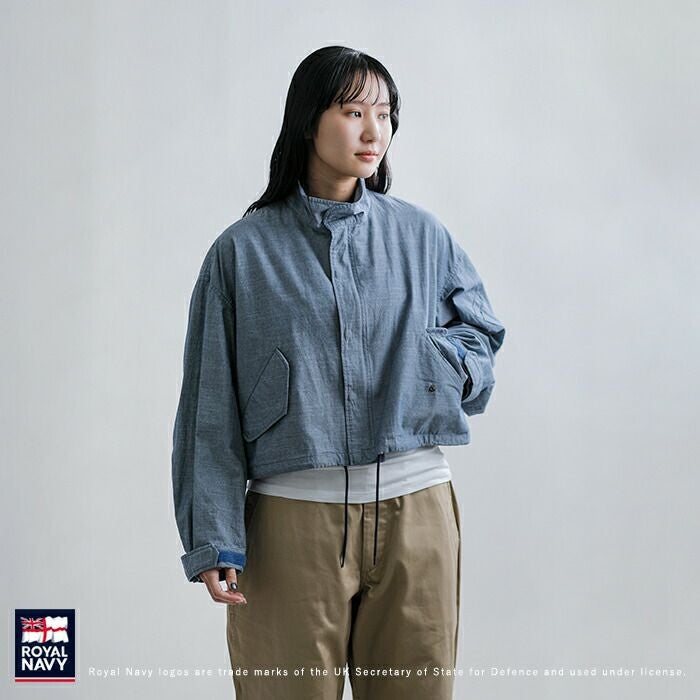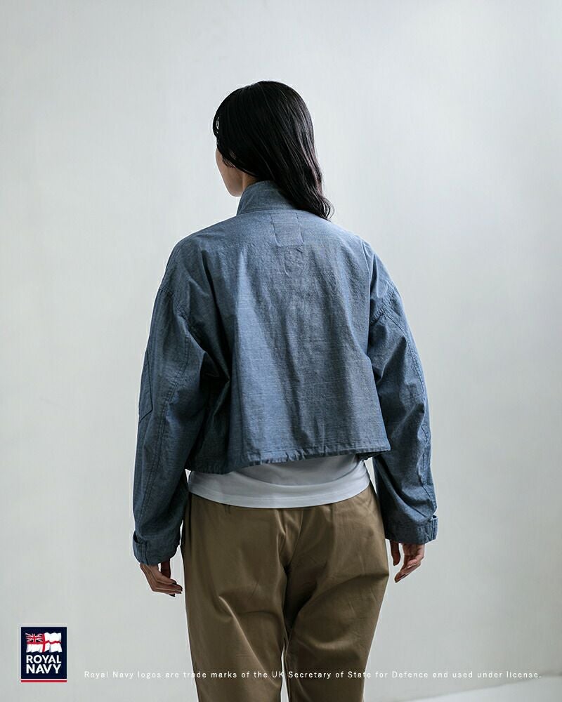 ROYAL NAVY(ロイヤルネイビー)コットンダンガリー フライトジャケットのご紹介です。イギリス空軍の寒冷地用フライトジャケットを、素材やディテールを変えてモディファイしたジャケット。イギリス軍ならではの秀逸なシルエットでショルダーラインが落ちただ羽織るだけで様になるジャケット。ハリコシ感のあるコットンダンガリーに置き換え、衿をスタンドカラーにZIPポケットをフラップポケットにモディファイ。ショート丈の魅力的なアイテムです。