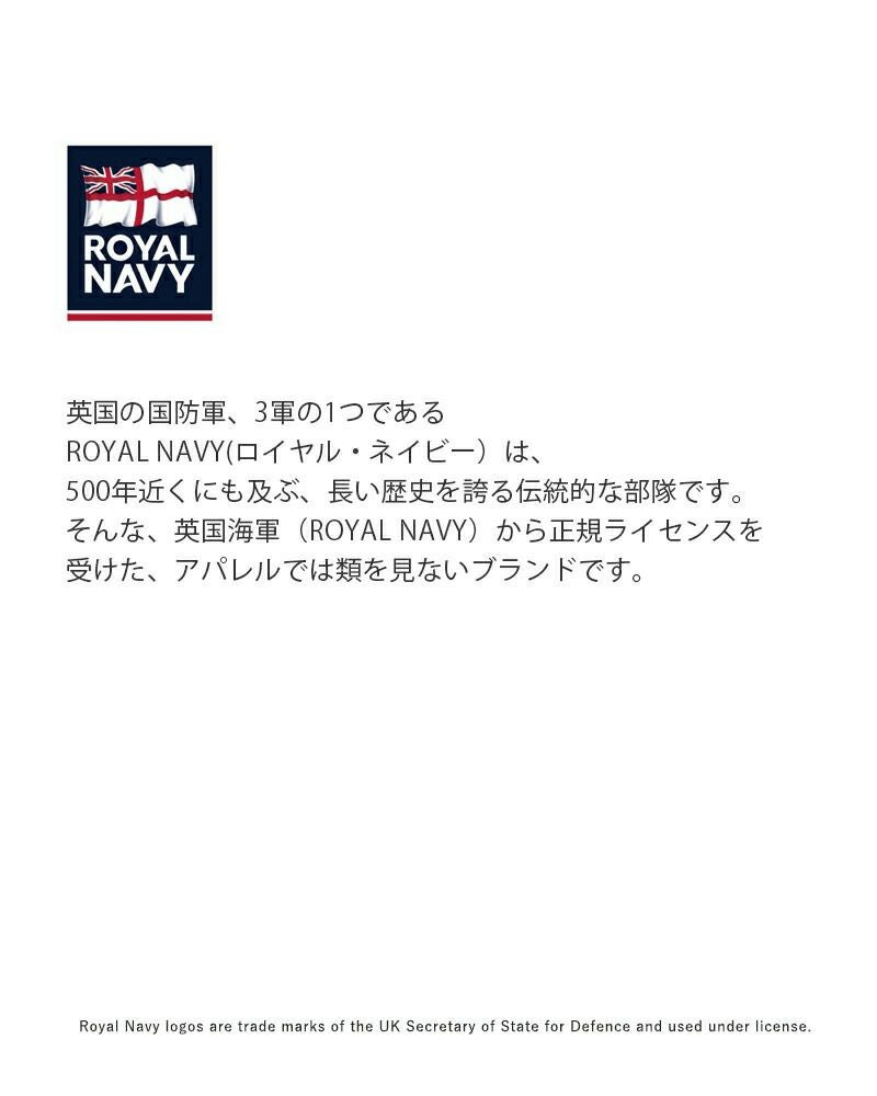 英国の国防軍、3軍の1つである ROYAL NAVY(ロイヤル・ネイビー)は、 500年近くにも及ぶ、長い歴史を誇る伝統的な部隊です。 そんな、英国海軍(ROYAL NAVY)から正規ライセンスを 受けた、アパレルでは類を見ないブランドです。
