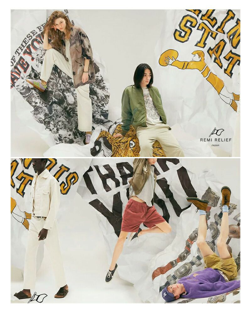 2007年、後藤豊氏によってスタートした日本のブランド。ブランドネーム、REMI RELIEFは『REMIX=工夫、創造』『RELIFE=省く』を意味しています。ひとつひとつの工程に創造、工夫を付け加えながら余分なものは取り除き、省いていく結果「良いもの」が生まれるという“MEISTER”の思想がブランド名の由来。『HIGH QUALITY OF LIFE』量では無く「質」という思いを基に、糸、撚糸、編み立て、プリント顔料、加工と全てを拘りながら、無駄を省いた「究極なアメリカンベーシック」を追求しています。