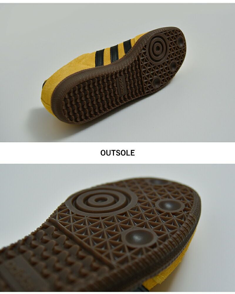 薄底のガムソールは、SAMBAらしいレトロな雰囲気を残しつつ、安定感のある履き心地を実現。