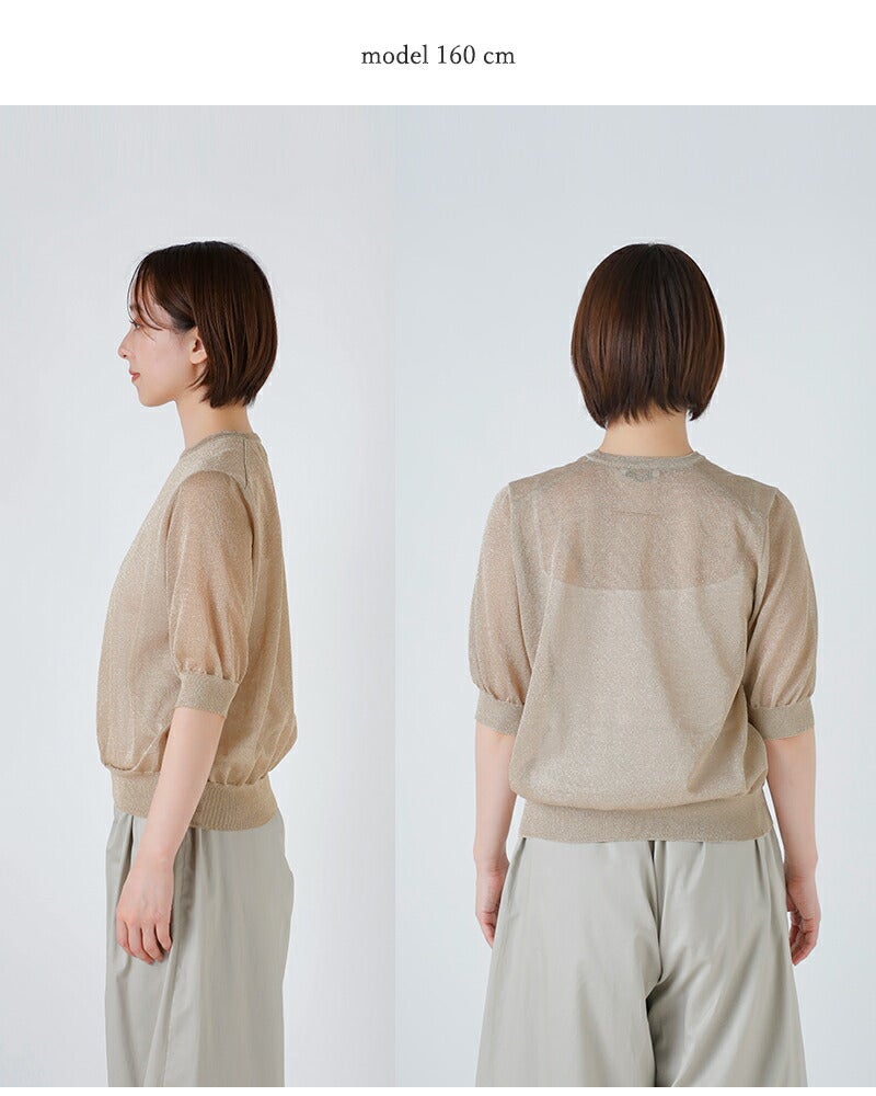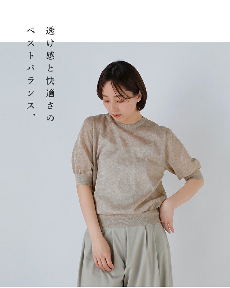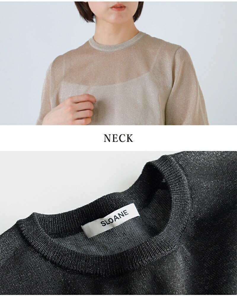 12ゲージの二重臼天竺編みで丁寧に仕立てた上品な透け感が魅力のラメシアー半袖クルーネック SLOANE スローン 天竺ラメシアー 半袖クルーネック プルオーバー sl10s-1123 レディース 2026ss新作 春夏