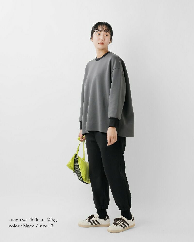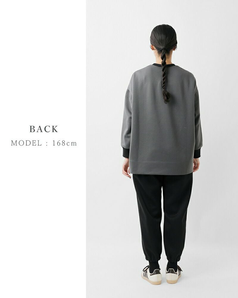 丸みのある落ち感と締まりのある裾リブがメリハリを生み、軽やかでキレイ見えするシルエットに仕上がっています。