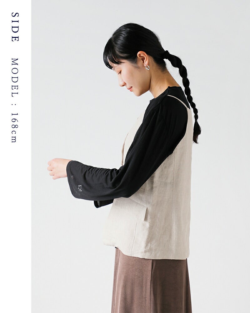 上質なリネン素材が持つ、やわらかな風合いと通気性の良さを活かした一枚。シンプルながらも存在感のある一枚に仕上がっています。