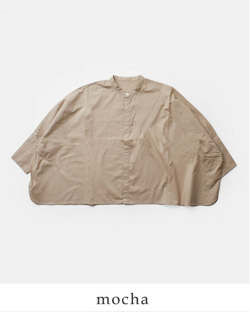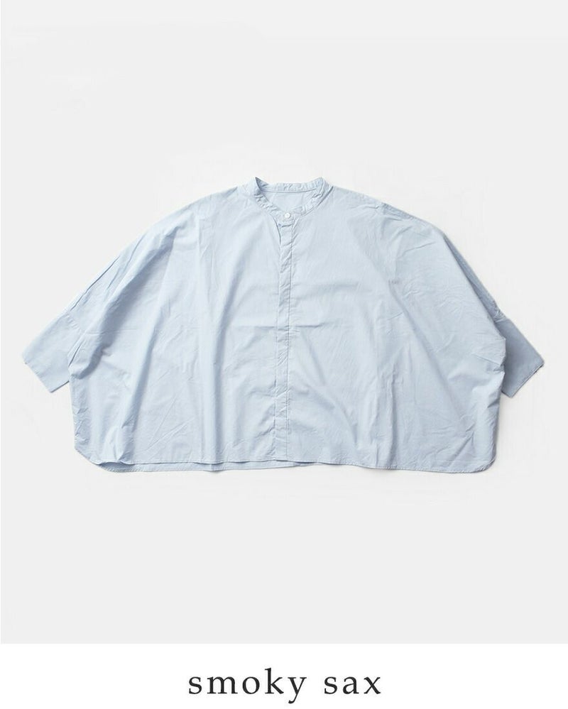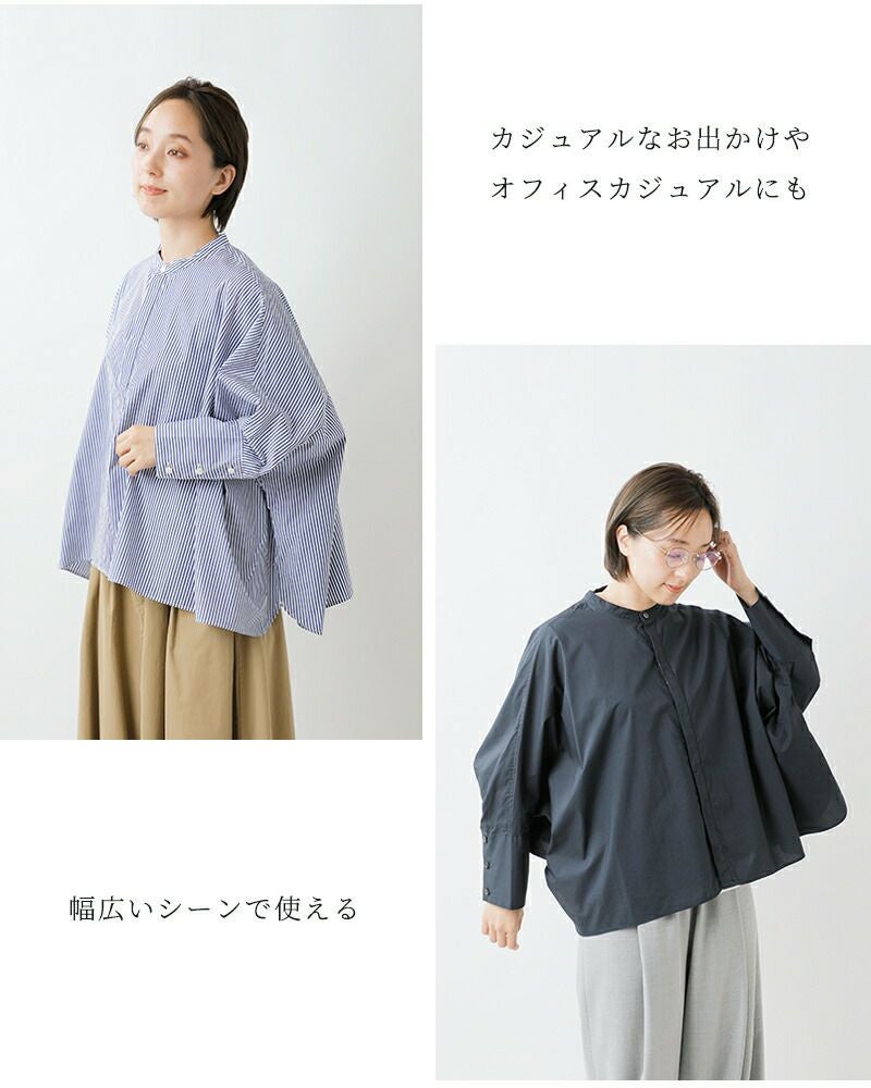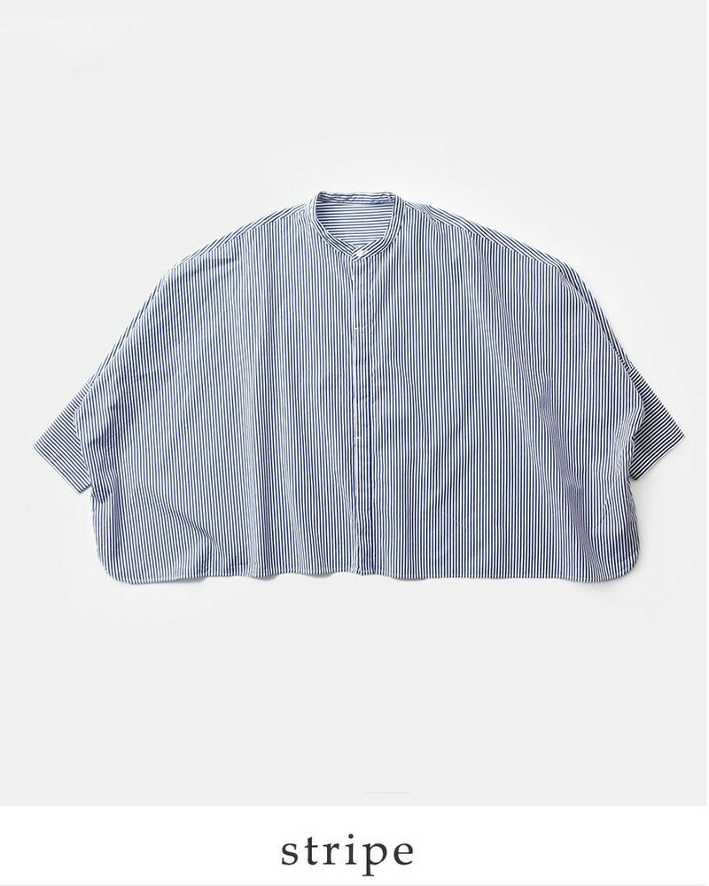 universal tissu(ユニヴァーサルティシュ)より、ナチュラルタイプライター ストライプ バンドカラー ポンチョ シャツ をご紹介します。