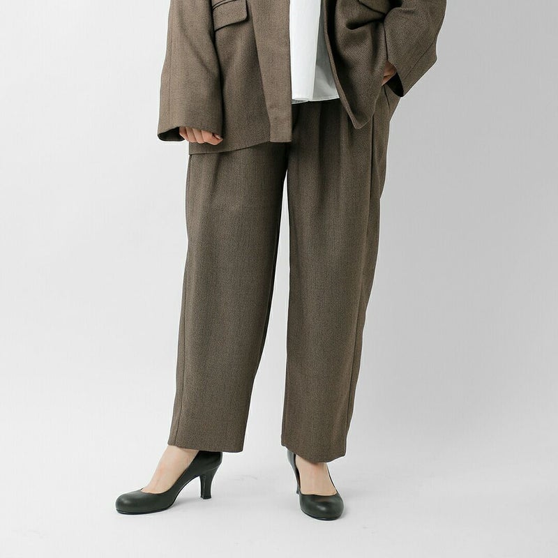 whyto(ホワイト)より、シックツイード ラウンド トラウザーパンツ “chic tweed round trouser”のご紹介です。カーブラインでテーパードをかけたトラウザーパンツ。素材のクタッとした落ち感と、カーブシルエットの相性が良く綺麗なシルエットを実現。ブラウン系の新鮮な色味を入れており、フォーマルでもカジュアルダウンさせやすいラインナップです。多色見えするツイードを表現した、表面変化の楽しめる新素材です。同素材のジャケットとセットアップ可能な品番です。