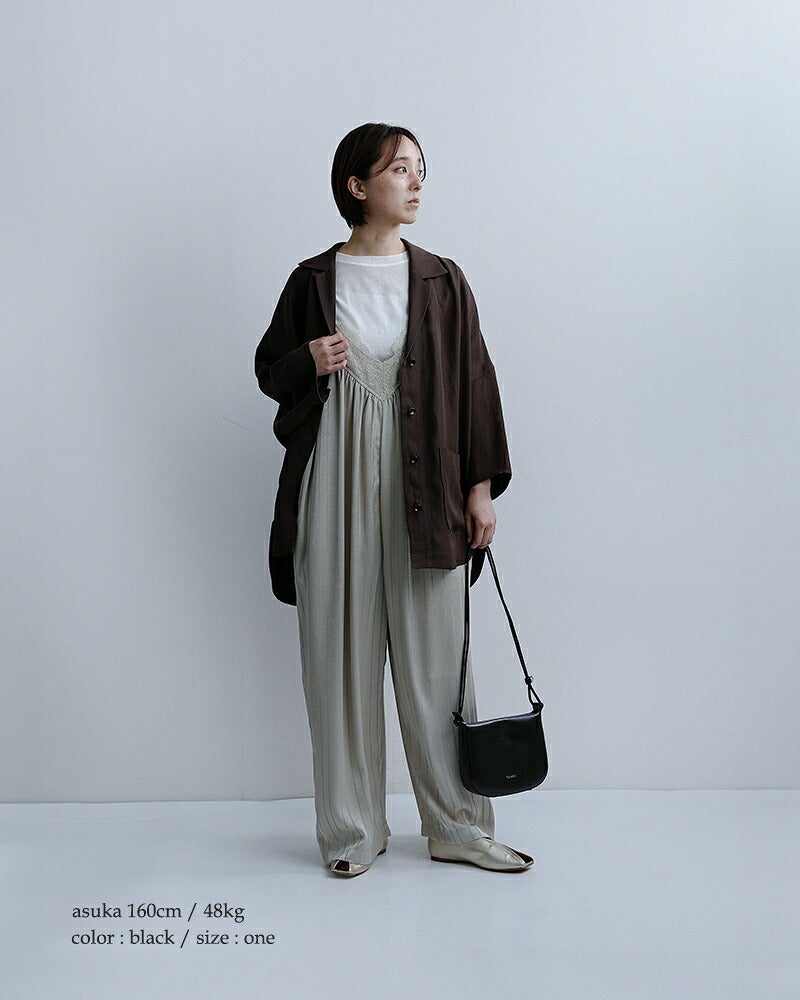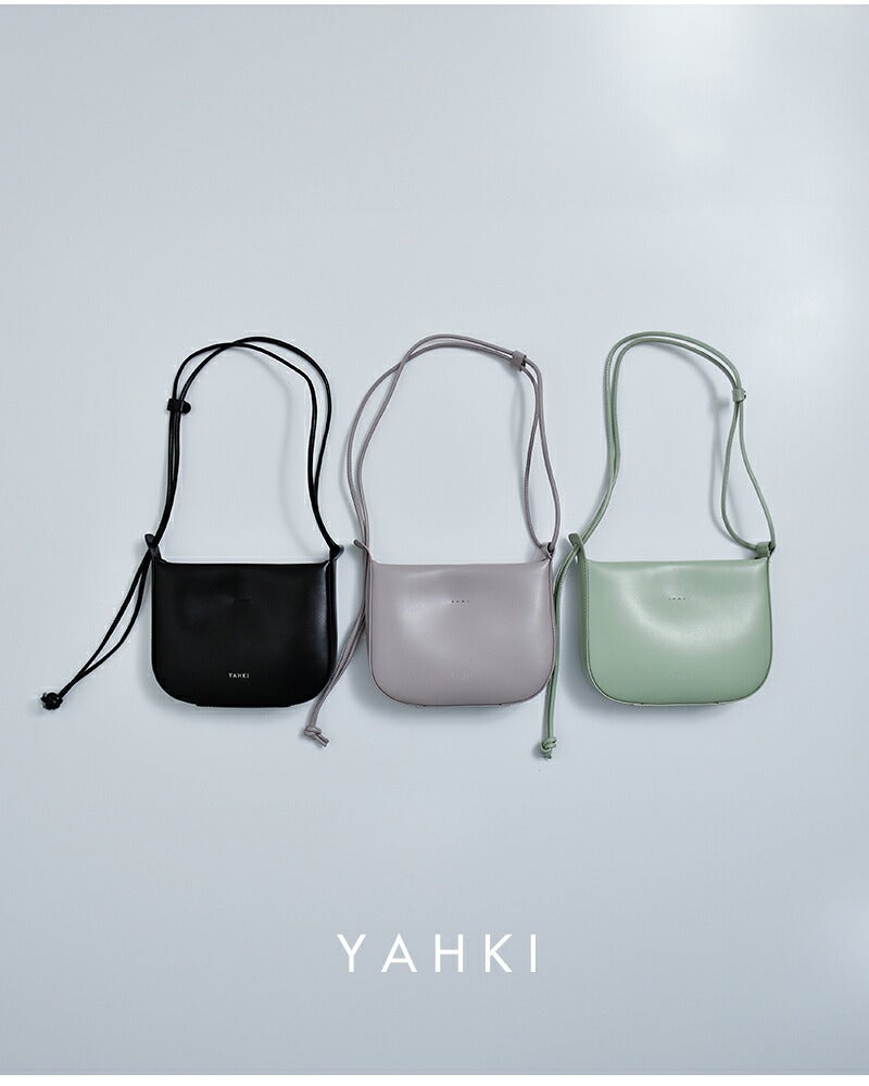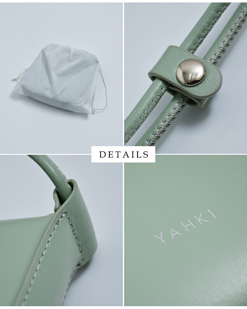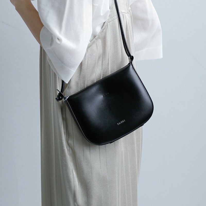 YAHKI(ヤーキ)より、ソフトダブルフェイスレザー ショルダー バッグのご紹介です。 なめらかな表情のレザーを使用した、ミニマルなショルダーバッグ。 無駄を削ぎ落としたシンプルなフォルムが、スタイリングに自然と溶け込み、洗練された印象を与えます。 コンパクトなサイズ感ながら、スマートフォンやミニウォレットなど必需品が収まる実用性も確保。ストラップは長さ調整が可能で、肩に掛けた際に程よい位置でフィットし、軽やかな持ち心地を叶えます。程よいツヤ感のある素材が上品さを引き立て、カジュアルからきれいめまで幅広いスタイルにマッチ。デイリーに使いやすく、コーディネートをさりげなく格上げしてくれるショルダーバッグです。