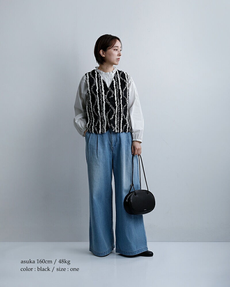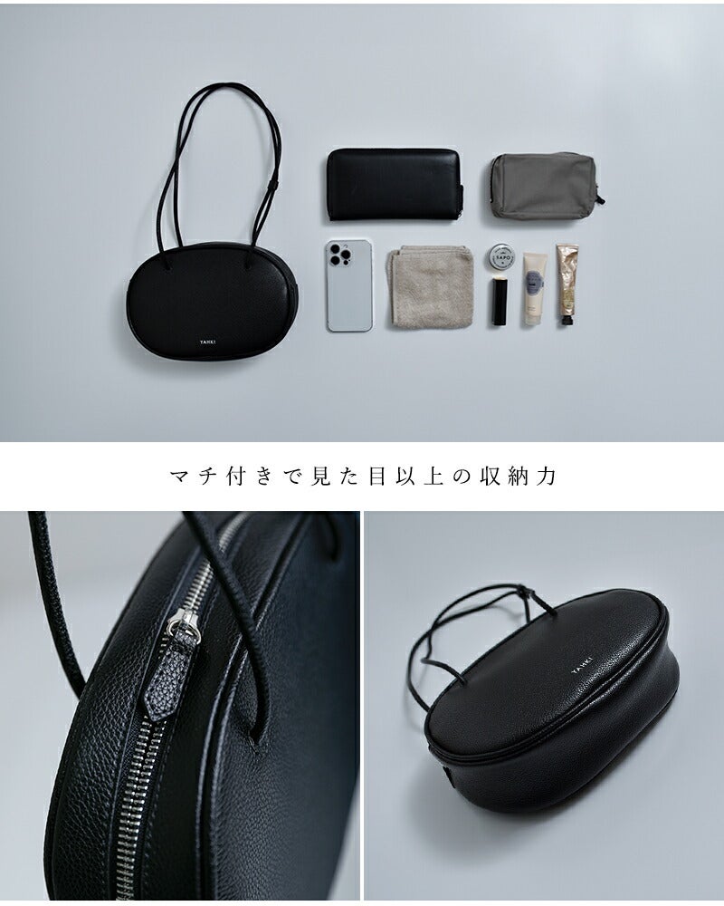 やわらかな風合いとほどよいシボ感が魅力の素材で仕上げた、楕円フォルムのミニバッグです。