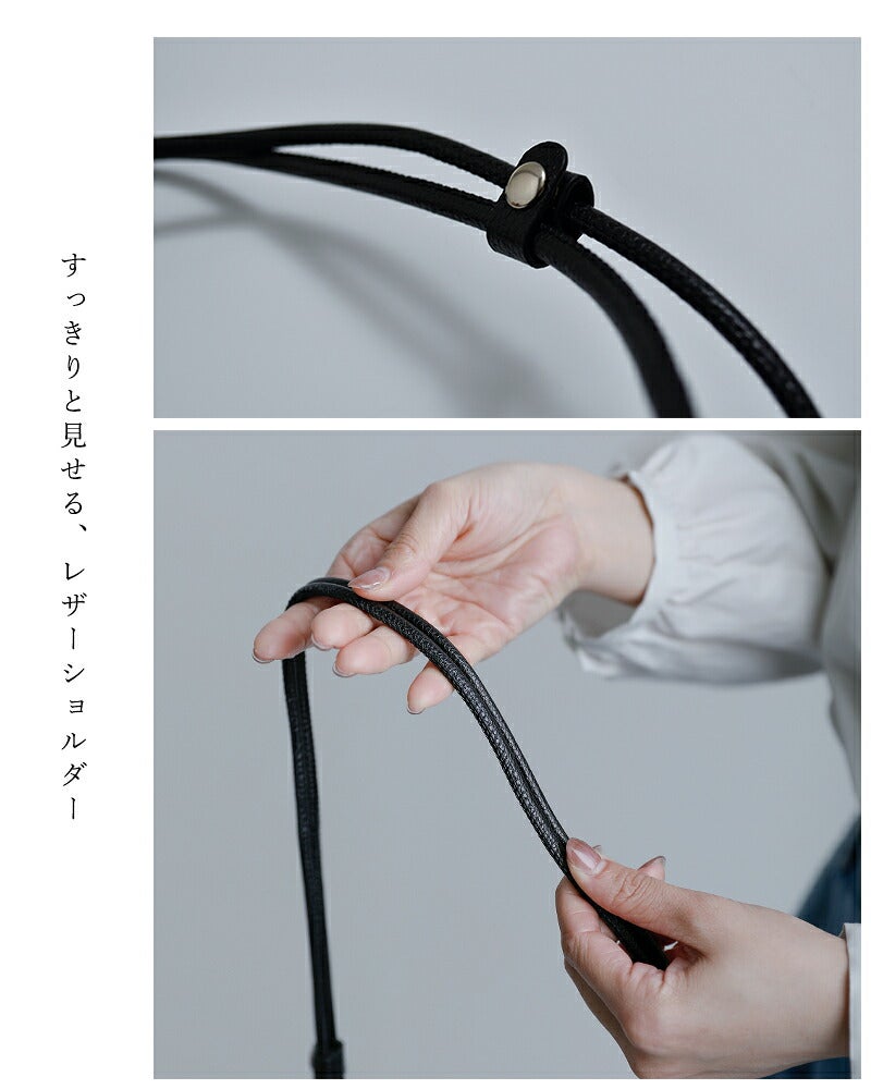 手にすっとなじむ華奢なストラップと、ころんと丸みのあるフォルムが印象的。シンプルな装いにも自然と溶け込み、さりげなく洗練された雰囲気を演出します。コンパクトながらも存在感があり、スタイリングのアクセントとしても活躍します。